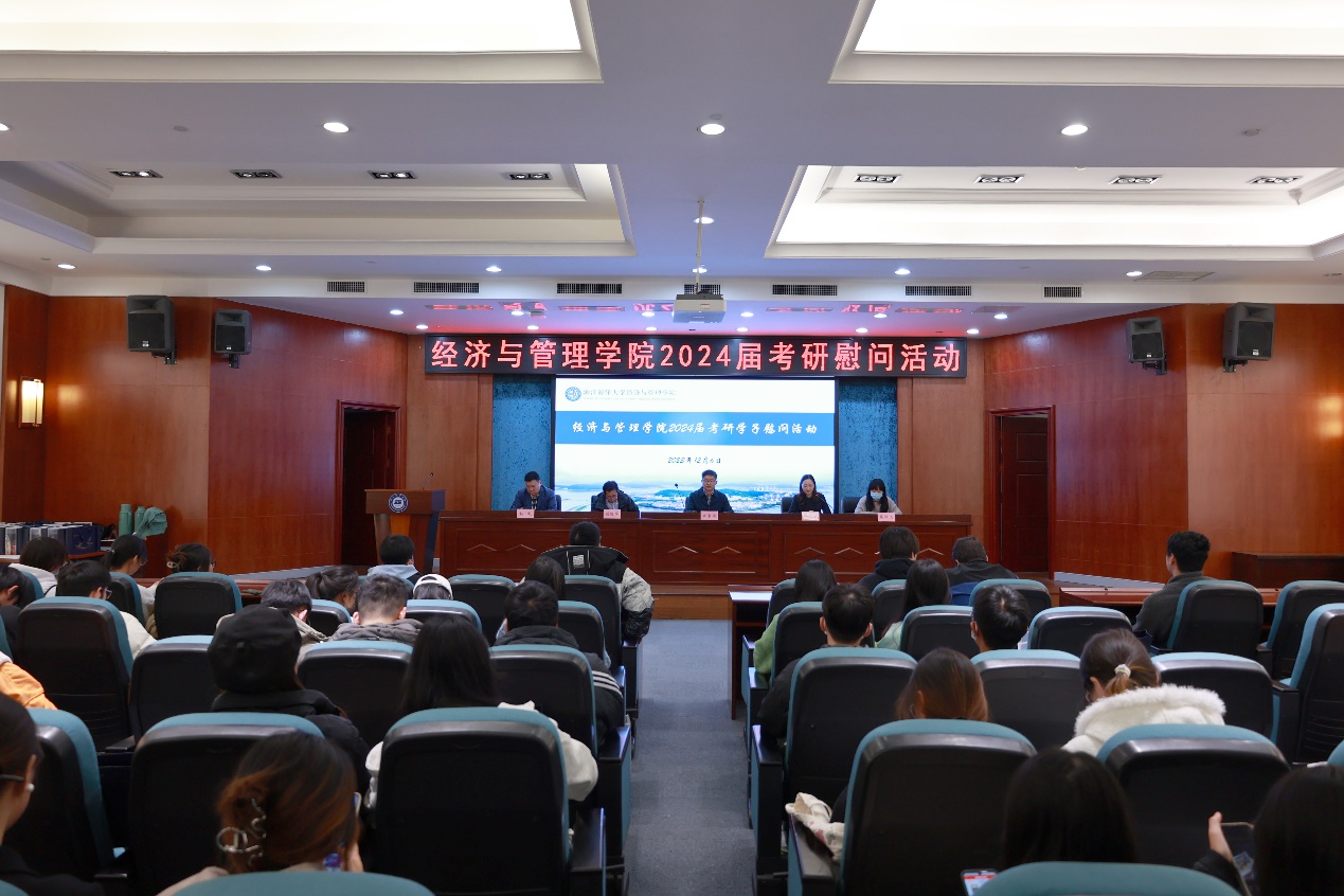 在2024年全国硕士研究生招生考试即将来临之际,为帮助我院考研学子坚定目标、调整心态、树立信心、增添动力,2023年12月6日下午,yl88858永利集团于新城校区图书馆一楼报告厅开展了“一‘研’为定,温情护航” 2024届考研学子慰问活动。yl88858永利集团院长、党委副书记全永波,党委副书记、纪委书记徐幼文,副院长、A20物流1班主任顾波军,班主任代表A20行政2班主任杨帆,学工办副主任巢虹玉,团委负责人施辰阳,就业辅导员李金航,以及学院全体2024届考研学生参与此次会议。本次活动由徐幼文副书记主持。