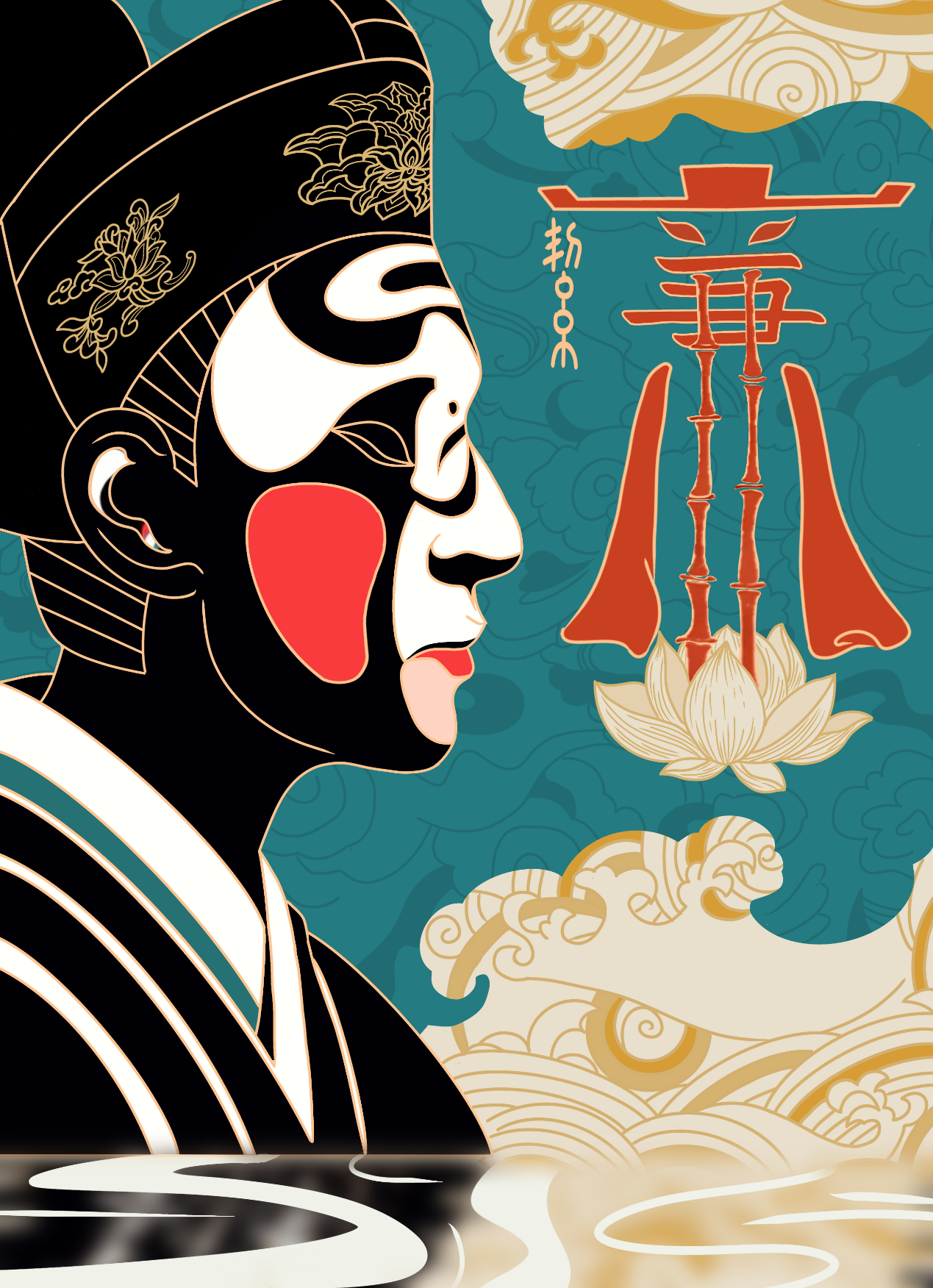 《廉洁青年说》作品解读:廉洁奉公自古以来就是我国所追求的高尚品格和文化气节,为此还赋予了许多大自然中的植物以高洁的特性,从而形成了我国独特的廉政价值观。图中“廉洁”二字,“洁”以甲骨文化形为“廉”的一笔,将“廉”的整体设计为头戴官帽,身穿官袍的服饰形象。内里以象征廉洁的竹子做支撑,竹子上方是化形为眼睛,意为监督与审视,结合下方脚踩莲花,通意为明辨笃行,不忘初心。新时代中国青年要在成长拨穗期扣好廉洁自律的“第一扣”。为此,画面左侧将青年之面庞附以包拯之脸谱,寄以热血与希望。