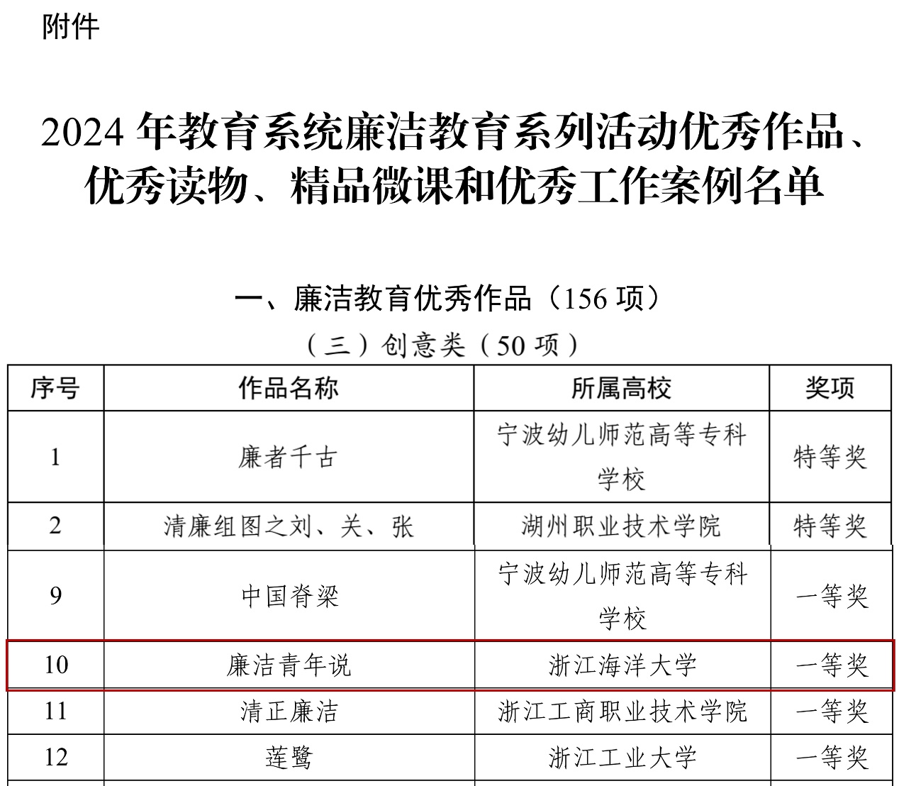 近日,省委教育工委公布了“2024年浙江省教育系统廉洁教育系列活动”评选结果,我校推荐的3件作品榜上有名,这也是我校在该赛事中取得的历史最好成绩。其中,由我院推荐的作品《廉洁青年说》(作者:A21财务1伍梅琳)获省廉洁教育优秀作品创意类一等奖。