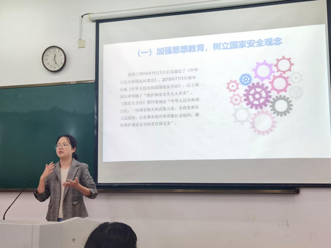 最后,吴冬梅老师以“大学生如何维护国家安全”为着手点,给团学干部提出了增强反间防谍意识和防范网络间谍的建议,号召同学们要锤炼思想作风,树立国家安全观念;增强法律意识,及时防范和制止异动;加强制度规范,筑牢反间防谍的钢铁。