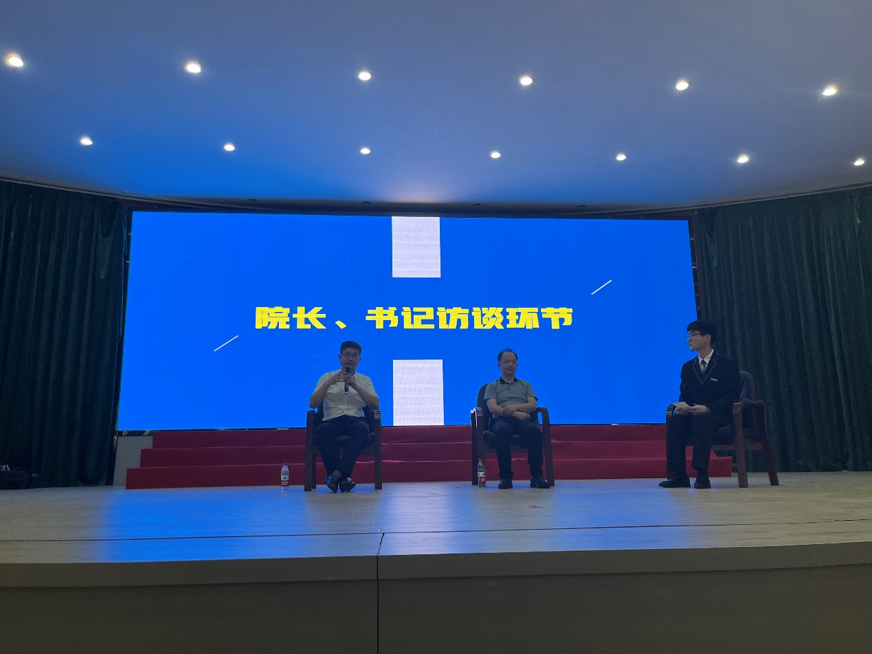 最后,是新生期待已久的院长、书记访谈环节,针对新生们关心的校园生活、学业成长、生涯规划、专业优势和就业前景等问题,主持人代表新生们向全院长和易书记一一请教。在两位老师的耐心解答后,同学们对大学生活和所学专业有了初步的认识与了解,对未来有了进一步规划,一定程度上拓宽了同学们思维的广度和深度。