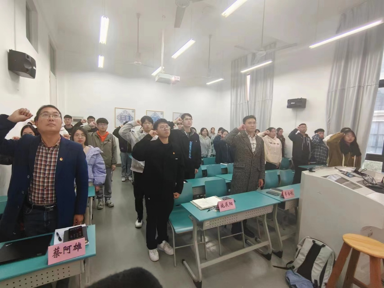 施辰阳老师呼吁全体同学要树立远大的理想,奋发进取,严格要求自己,积极履行团员的权利和义务,要把党的二十大精神融入思想、注入灵魂、付诸行动,努力在追求青春理想、展现青春活力中成就更好的自己。李金航老师肯定了团支部过去一年取得的丰硕成绩,勉励全体同学要勤奋学习、立志成才,积极参加志愿服务和各项实践活动,与新时代同频共振,切实践行“请党放心、强国有我”的青春誓言。