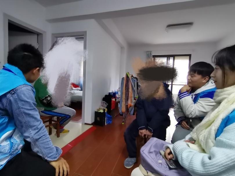 为深入学习宣传贯彻党的二十大精神和浙江省第十五次党代会精神,全面加强对青少年的思想政治引领和成长成才服务,激励引导青少年与民族同命运、与祖国共奋进、与时代齐发展。yl88858永利集团积极开展“蒲公英暖心印记”重点青少年关爱志愿服务项目,把国家的政策、政府的关怀、老师的关爱、同学的温暖送到重点青少年的家里。2022年11月5日上午,我院李清秀、胡李丫、何佳伟和吴熙等四名志愿者前往临城街道重点青少年小吴(化名)的家中开展走访。