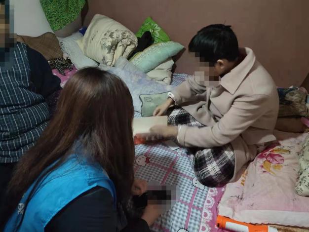 第一位走访对象是白泉镇繁强村的闲散青少年小玫(化名),在走访中小组成员了解到这位青少年患有自闭症,生活无法自理,生活上依靠奶奶照顾,但奶奶年纪大,身体较差。其家庭收入以父亲打零工、做苦力为主,父亲工资微薄,家中靠低保维持生活。整个访谈过程中,青少年没有表现出抗拒的情绪。