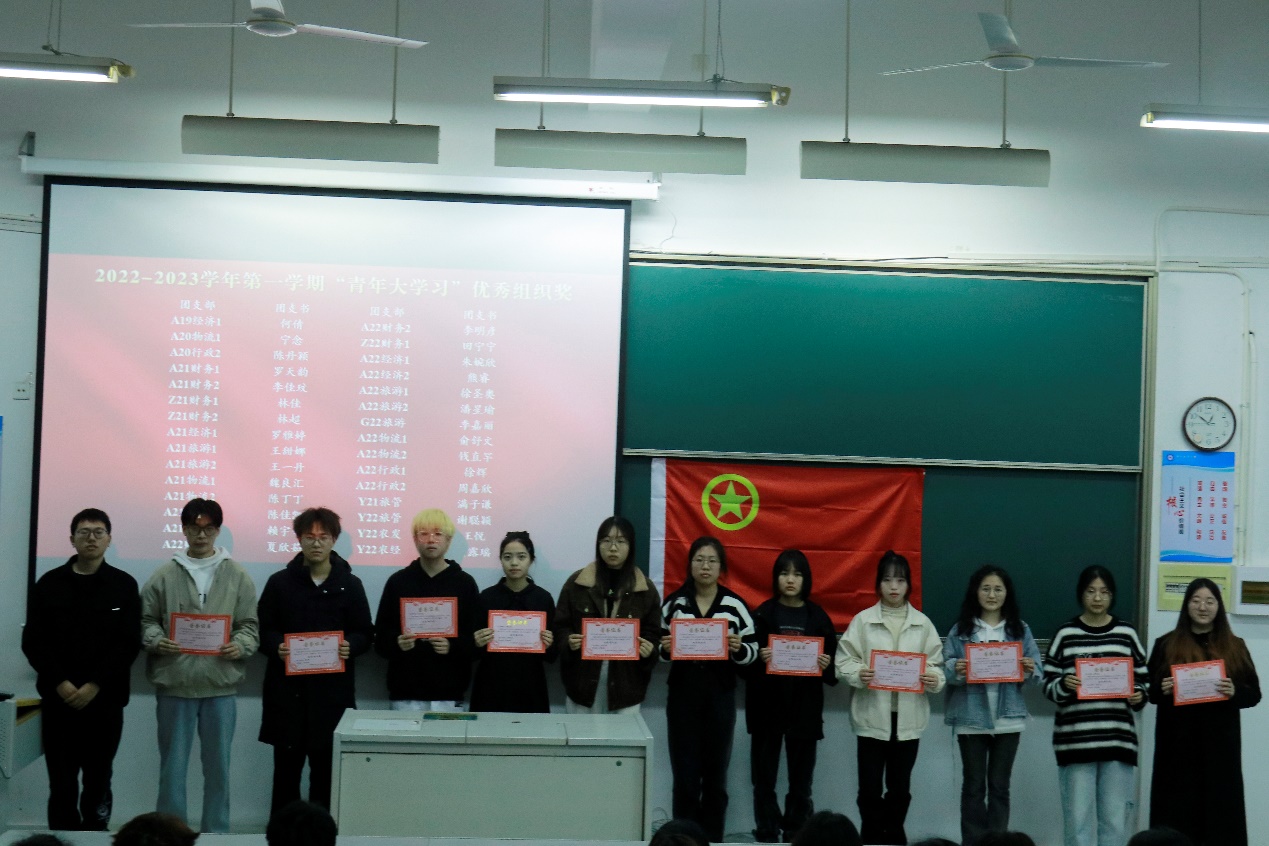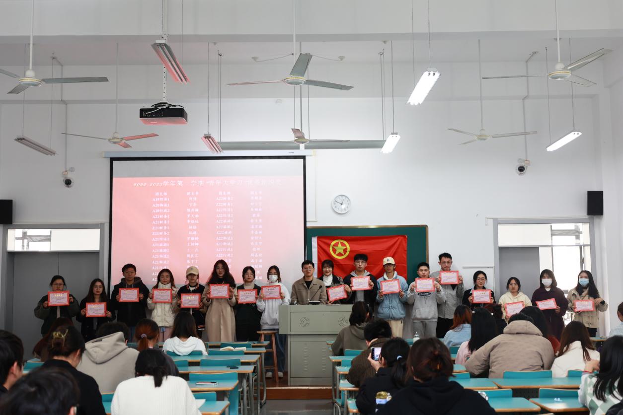施辰阳老师对上学期学院的“青年大学习”学习情况予以充分肯定,对于上学期学习成效显著、参与率名列前茅的31个团支部,施老师向各班团支书们颁发了“青年大学习”优秀组织奖荣誉证书,也表彰了团支书们在“青年大学习”学习动员过程中的积极表现。施老师号召,新学期学院各团支部要继续广泛动员和督促班级同学积极参与到“青年大学习”中,用新思想启迪灵魂,用新理论武装头脑,不断给自己“充电”,继续保持优异成绩。