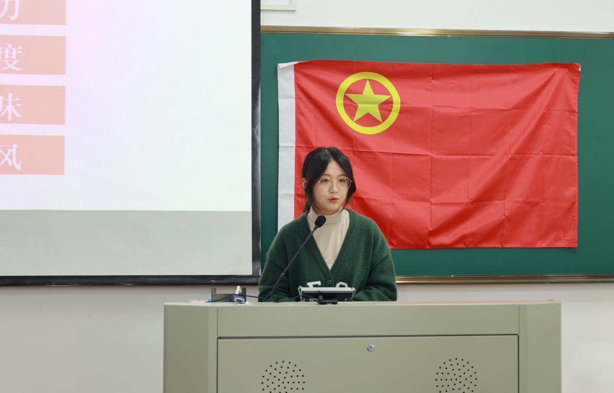 最后,施辰阳老师向全体团干部提出了四点期望:第一,要讲政治,重作风。不断锤炼忠诚坚定的政治品格,在政治原则、大是大非问题上旗帜鲜明、立场坚定;第二,要讲责任,重效率。担起责任,增强进取心,积极做好自我管理、自我约束,在工作上要体现执行力;第三,要讲特色,重创新。要进一步创新团支部工作体制和活动载体,努力推出特色鲜明的主题团日活动,丰富班级同学的校园文化生活;第四,要讲学习,重表率。要深刻理解处理学习与工作之间关系的重要性,充分发挥团干部的示范带头作用,在学习上做好表率,进而端正班级风气,凝聚人心。