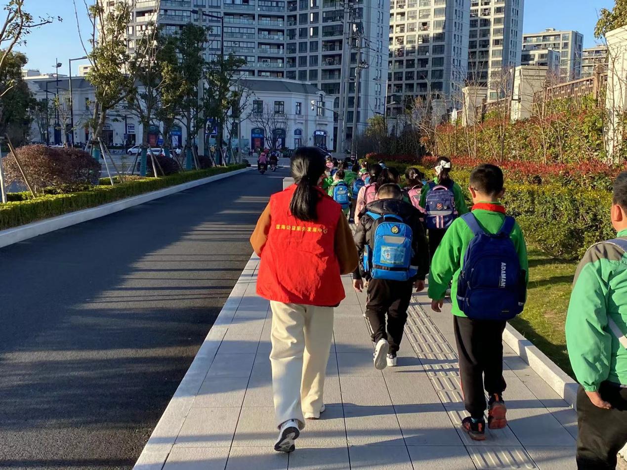 3月,蓝海大学生社区工作室持续、深入推进“平安回家路”志愿服务活动,为舟山长峙岛南海实验小学同学每日的放学回家保驾护航。在志愿活动中,我院青年志愿者们会提前和学校积极沟通,确定好护送路线、时间等事宜,当天协助老师做好点名、队形整理和纪律整顿等工作,保证每一个小朋友不掉队,顺利将孩子们平安送回家。志愿者们在协助老师工作的同时,也会体验到了老师的辛苦,扩大了自身的社交圈,也逐渐走出了的舒适圈。