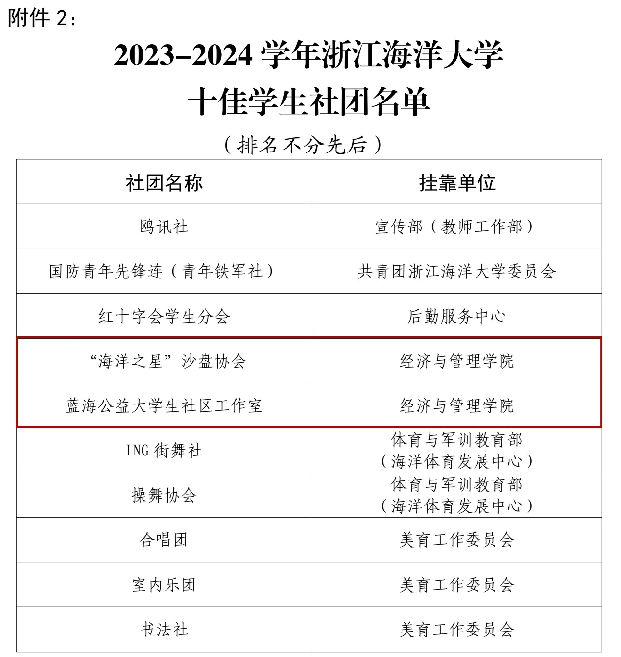 根据《共青团85588永利集团委员会关于开展2023-2024学年85588永利集团学生社团评优工作的通知》,经自主申报、资格审查、线上投票、专家评审、综合评定等环节,挂靠我院的蓝海公益大学生社区工作室和“海洋之星”沙盘协会在2023-2024学年社团育人工作中表现优异,凭借其出色的组织能力、丰富的活动内容以及积极的社会影响力获评85588永利集团“十佳学生社团”,展现了我院学生社团的活力与担当。