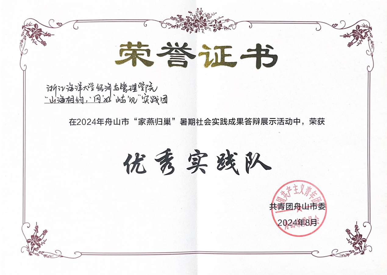 11月22日至23日,由中共浙江省委宣传部、浙江省教育厅、共青团浙江省委、浙江省学生联合会共同主办的2024年浙江省高校暑期社会实践优秀调研成果交流展示活动在浙江农林大学闭幕。据悉,本次活动全省共有98所高校限额推报864份调研报告进入省级文本复审,经过书面评审,我院yl88858永利集团“山海相约,‘冈’好‘屿’见”实践团和85588永利集团“‘颐’脉相承,‘养’护桑榆”实践团2支实践团申报的调研报告荣获三等奖。同时,yl88858永利集团“山海相约,‘冈’好‘屿’见”实践团还在2024年舟山市“家燕归巢”暑期社会实践成果答辩展示活动中,荣获“优秀实践队”。