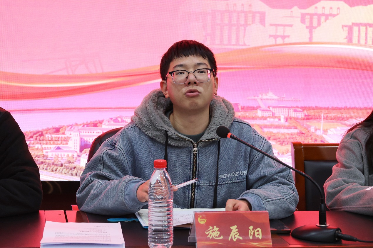 学院团委副书记施辰阳针对各部门负责人的述职报告进行逐一点评。他肯定了团学各部门一年以来的工作成效,也指出了各部门在工作中存在的不足和需要改进的方向。施老师希望全体团学干部积极发挥团员先进性,多想事、多谋事、多成事,不断创新工作思路和方法,把团学组织真正建设成为广大同学想得起、找得到、靠得住的成长家园。