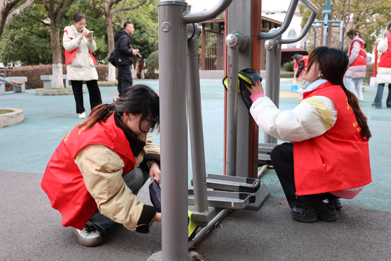 志愿者们携带着抹布、水桶等清洁工具准时集合,在社区工作人员的带领下,来到了社区公园。志愿者们有条不紊,迅速分工,一部分人负责擦拭公园内的健身器材和长椅,另一部分人则负责清理地面上的垃圾和落叶。活动过程中,志愿者们细心地擦拭着每一个器材,不放过任何一个角落的灰尘。在大家的共同努力下,公园内的设施变得焕然一新,为居民提供了一个更加舒适、整洁的休闲场所。