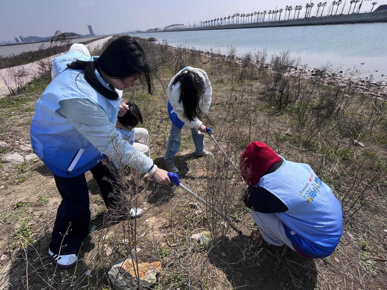 在小干岛滩涂上,志愿者们纷纷化身“环保卫士”“海洋守护者”,活跃于这片滨海之地。他们手持夹钳与环保袋,身姿或半蹲、或俯身,动作专注而细致,不放过任何一处角落。食品袋、塑料瓶、纸屑、烟蒂等垃圾,皆被精准夹起,收入环保袋中。同学们满怀热忱,全身心投入,他们脚踏实地、认真专注的模样,构成了滩涂上一道亮丽且独特的风景线。