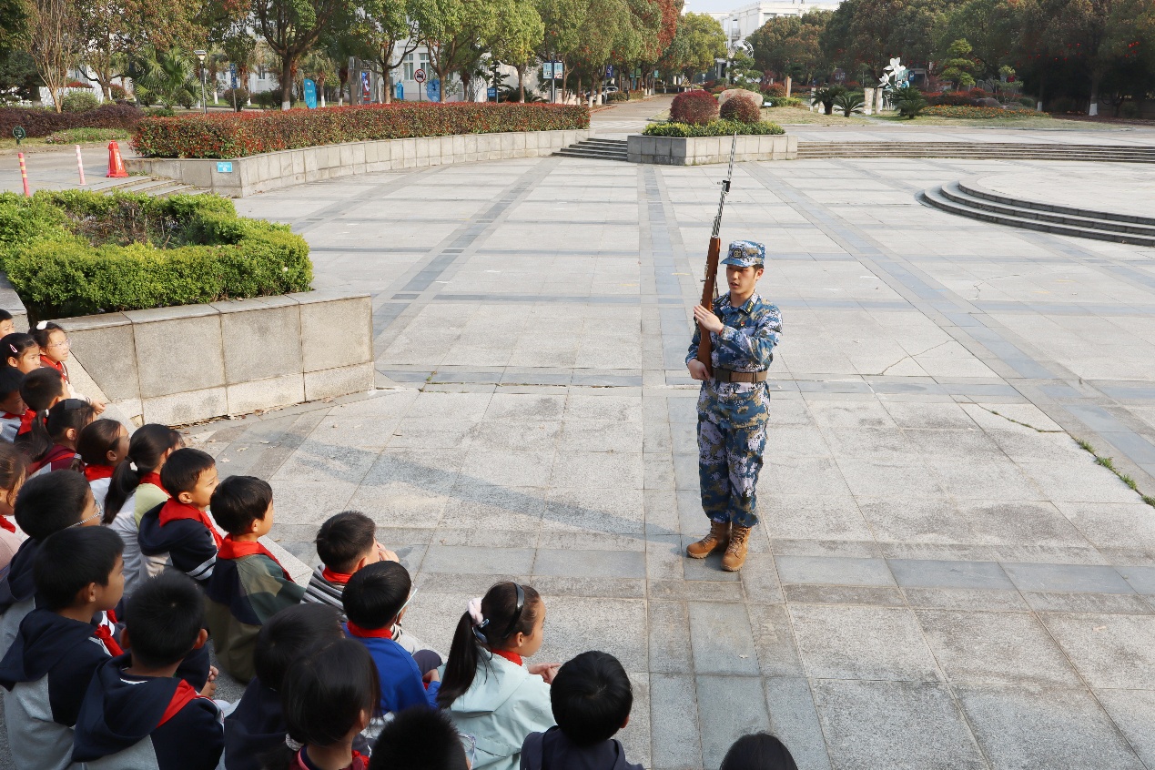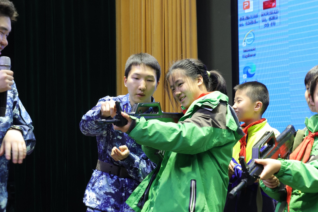 退役大学生们还为少先队员们讲解了95-1式自动步枪和56-1式礼宾枪(模型枪)的结构与操作原理,展示了步枪射击据枪的立姿、跪姿和卧姿等动作要领,带领他们体验模拟射击,进一步激发了同学们对国防知识的兴趣、军事技能的好奇心和实践热情,深刻感受到国防教育的魅力。
