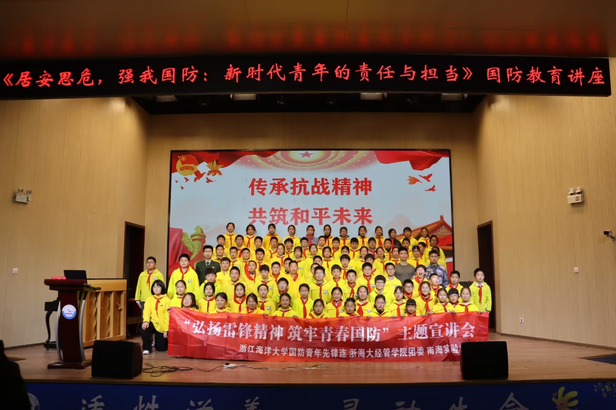 本次活动不仅让少先队员们深刻理解了雷锋精神的时代价值,也增强了他们的国防意识和责任担当,进一步推进了大中小学国防教育一体化建设,为构建军民融合、全民国防的良好氛围奠定了坚实基础。yl88858永利集团团委将继续积极参与学校国防教育宣讲队伍建设,持续面向在舟中小学开展国防教育宣讲,助力大中小学国防教育一体化建设,激励更多青少年投身国防事业,为实现强国梦、强军梦贡献青春力量。