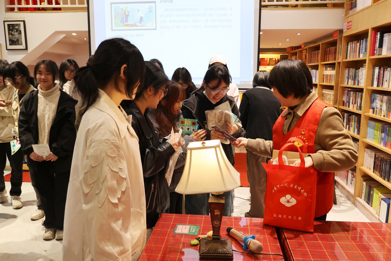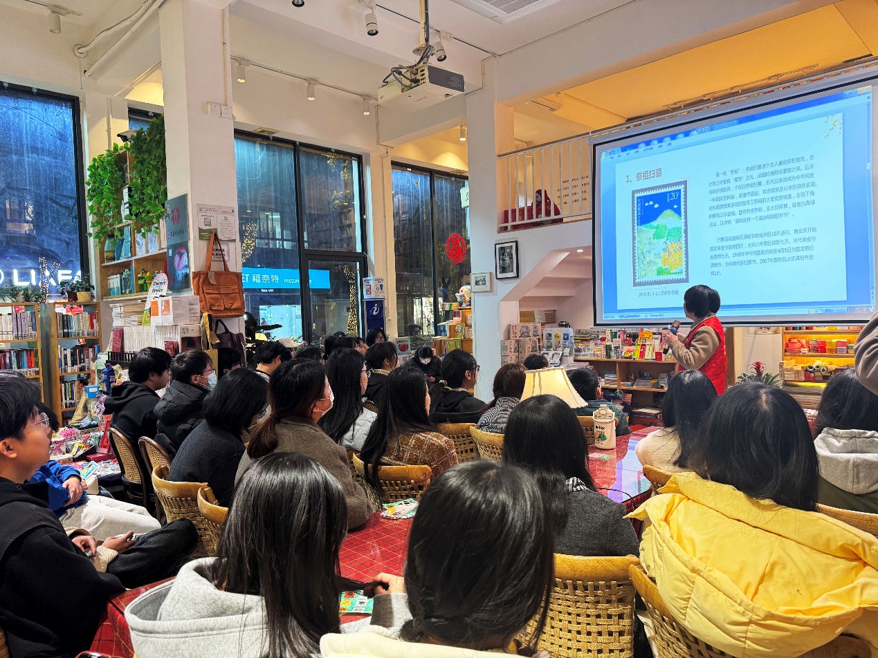 最后,金芳老师赠送了几枚具有代表性的邮票给在场的同学们,并鼓励大家在人类社会智能化的新时代,仍能通过尝试寄信这一传统方式表达情感、传递思绪,借信件打破虚拟世界的隔阂,让灵动的文字承载思念,跨越距离,给亲友带去慰藉,传承这份浪漫的沟通艺术。