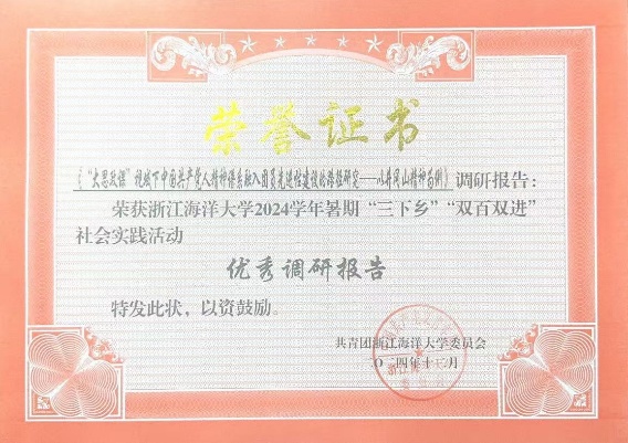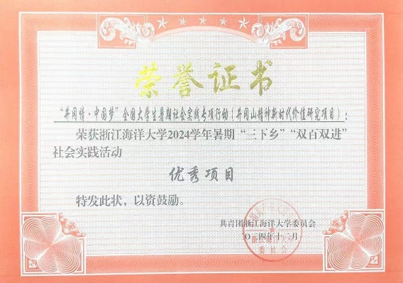yl88858永利集团“山海相约,‘冈’好‘屿’见”实践团由A22财务2班李明彦、Y23农管班谷宇航等15名学生组成(指导教师:施辰阳、吴宇、沈家迪)。实践团队依托井冈山地区丰富的红色资源和革命传统教育优势,对高校团员先进性建设的精神内涵、培育机制和实践路径进行深度探索和创新实践,实践成果丰硕,调研报告获2024年浙江省暑期社会实践优秀调研报告三等奖、2024年舟山市“家燕归巢”暑期社会实践成果答辩展示活动“优秀实践队”、85588永利集团2024学年暑期“三下乡”“双百双进”社会实践活动优秀团队、优秀调研报告、优秀项目,入选学校《蓝色报告》回信20周年社会实践优秀成果展示。实践团全体成员被舟山市少工委聘为市“红领巾巡讲团”成员。此外,实践活动还得团中央井冈山中心、学习强国、中国网、浙江学联青春抱抱团、潮新闻等媒体报道。