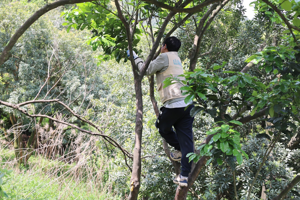 在实地劳动过程中,师傅还为大家介绍了果园里种植的桃树、香柚树、杨梅树等多种果木,拓宽了大家对农业品种与农艺知识的了解。据悉,此次志愿服务所帮扶的果园主人是一位七旬老人,因年事已高、体力渐衰,难以独自完成日常农事操作。未来,志愿团队还将继续开展系列帮扶行动,包括为成熟果实套袋、防虫筛果、协助采摘及销售等环节,切实为老人解决实际困难。
