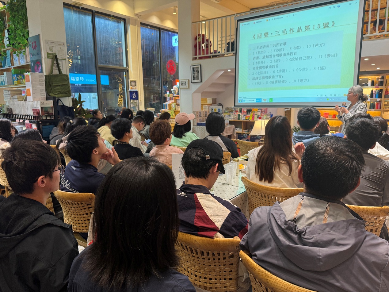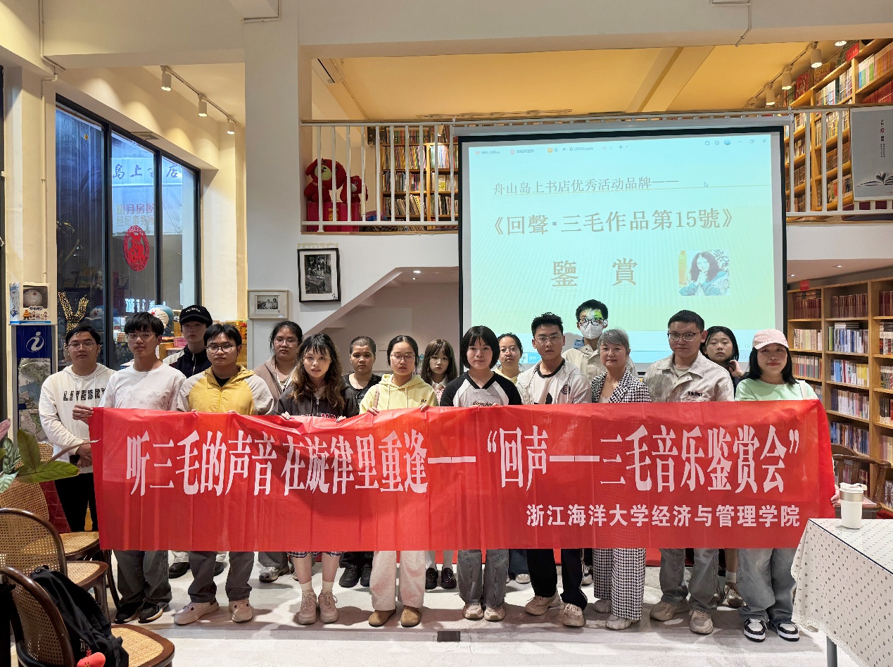 青春红五月,启航新征程。为弘扬文学艺术精神,提升青年人文素养与审美能力,2025年5月3日,yl88858永利集团团委组织20名学生赴舟山岛上书店参加“回声——三毛音乐鉴赏会”。主讲人李舟静老师结合三毛独特的人生经历,通过融合歌曲《三毛作品第15号•回声》的创作背景、音乐特点及情感内涵,带领同学们进入那独特的音乐世界里。