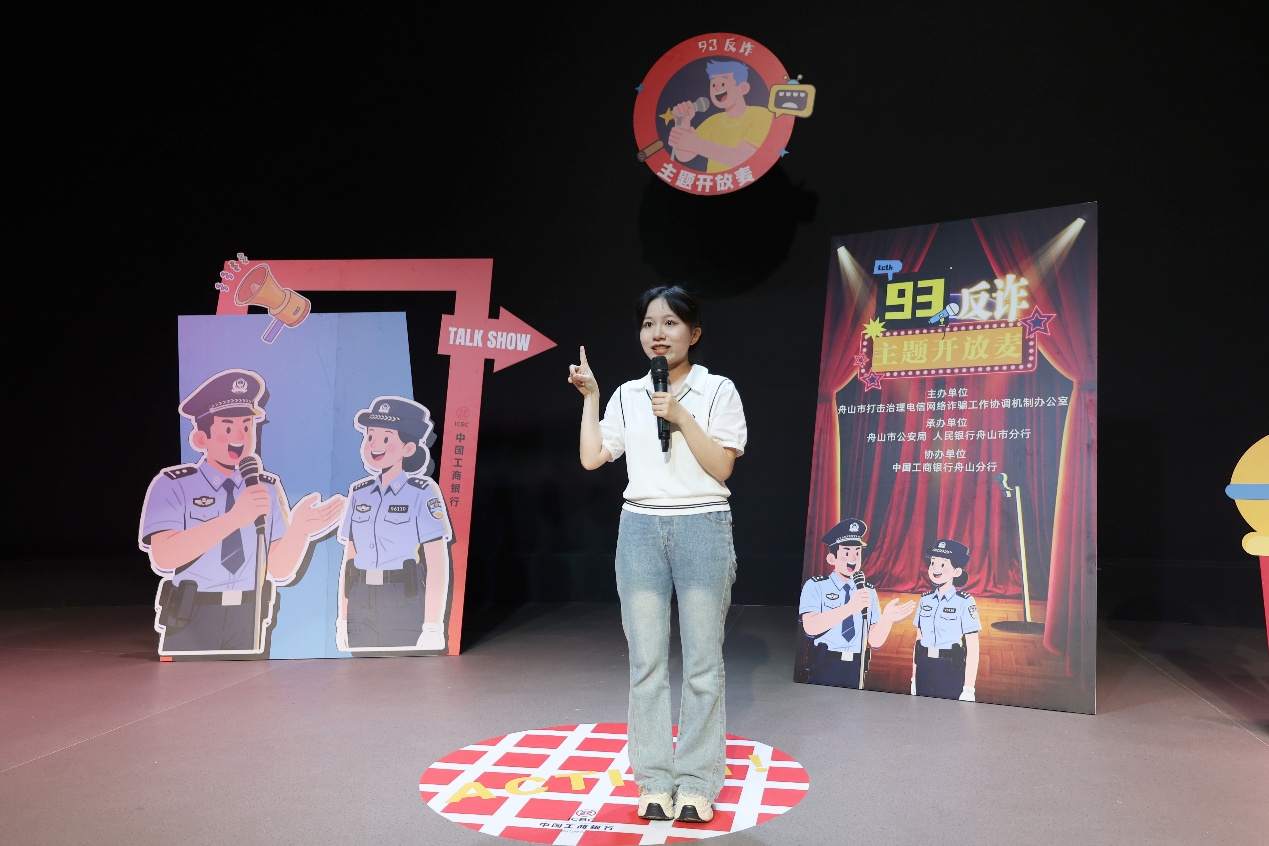 2025年5月23日下午,“93反诈主题开放麦”在舟山艺术剧院炸场开麦!市公安局党委委员、副局长包于宏,市公安局党委委员、政治部主任丁世杰,定海区副区长、公安分局局长周志海,中国工商银行舟山分行副行长许劲松,以及市委宣传部、团市委、中国人民银行舟山市分行、市公安局相关部门负责人,民警辅警代表和yl88858永利集团学生参与活动。
