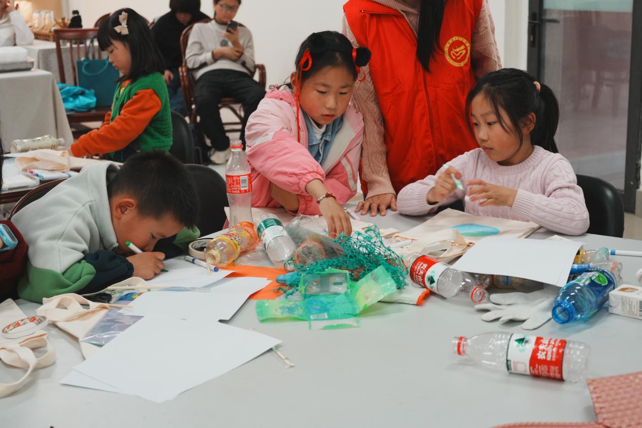 手工实践课程意在将环保理念转化为具象行动,由志愿者担任专业知识讲解的老师,通过趣味讲解、提问互动、手工实践的方式与小朋友们共同探索。利用放大镜现场观察收集来的海洋塑料垃圾,并发挥自己的想象力改造塑料垃圾,装饰环保袋,学习塑料垃圾回收处理、变废为宝的方法。指导儿童利用废旧材料创作工艺品,在体验资源再生价值的过程中,内化“减量、循环、创新”的环保理念。通过科学传播与行为引导的有机结合,在青少年心智中播撒海洋保护的种子,助力培育具备生态责任感的未来海岛公民。