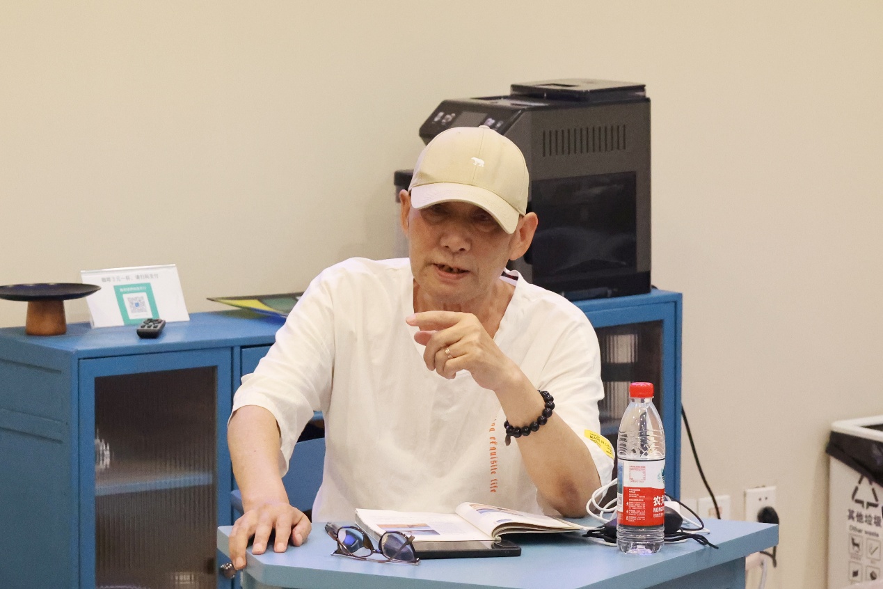 舒信虎老师向服务队成员讲述了自己从渔民到嵊泗渔歌传承人的成长经历,分享了渔歌背后的动人故事与深厚情感。他现场演唱了《哥是舢板妹是缆》《带鱼煮冬菜》《我的阿姐囡》等多首具有代表性的嵊泗渔歌,声音浑厚沙哑、情感真挚饱满,让师生们仿佛置身于波涛之上,感受到渔民劳作的艰辛与豪情。