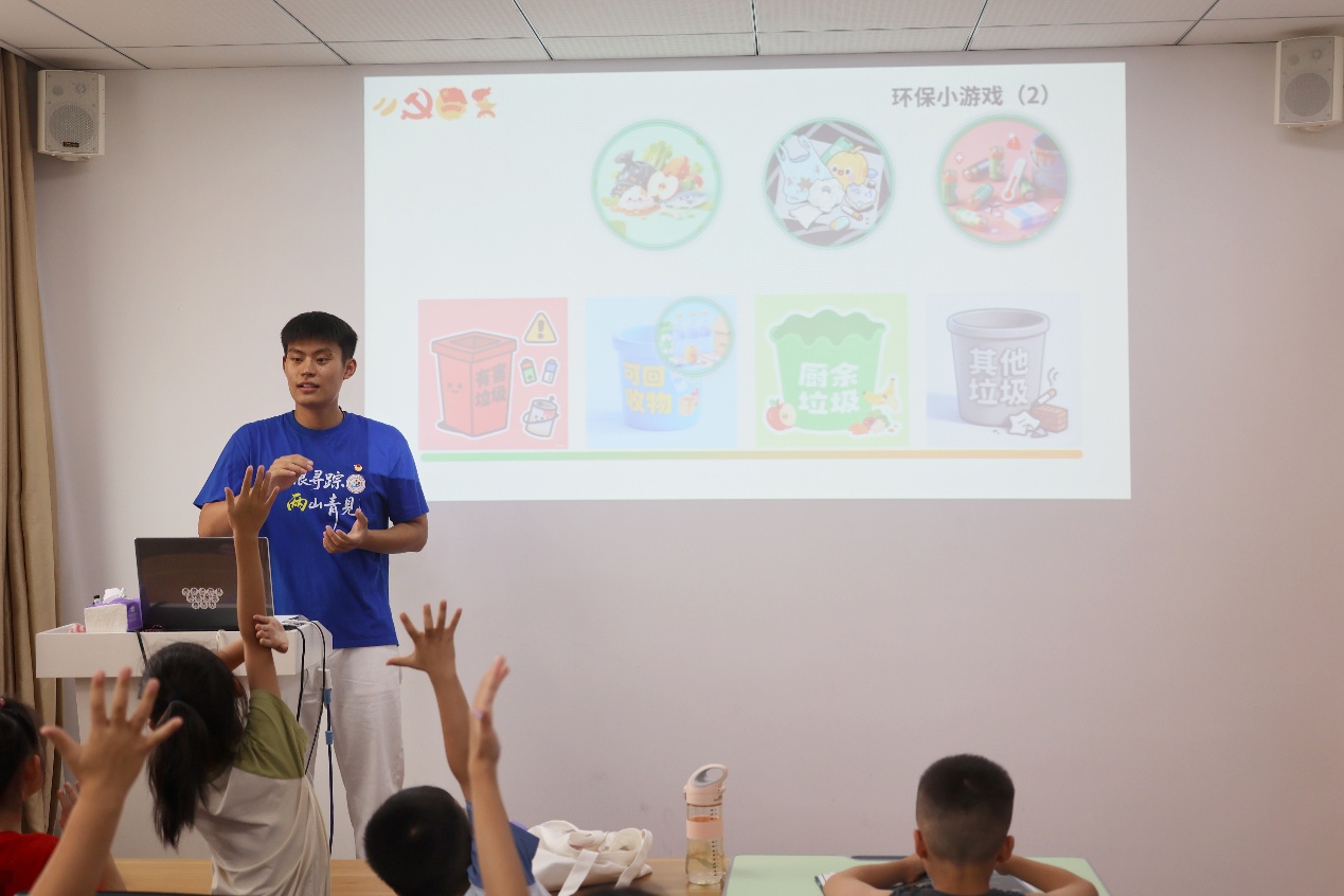 服务队还赴基湖沙滩、小黄沙沙滩、南岙沙滩、大玉湾沙滩、大坑沙滩等地开展舟山市“海小青”护海净滩志愿公益活动,舟山市“海小青·滩主”施辰阳带队前往。经过全体志愿者的共同努力,护海净滩行动共拾取硬塑料、膜状塑料、玻璃陶瓷类、金属类等各类垃圾共380.5千克。队员们还认真完成垃圾分类称重、转运处理等后续任务。经过清理的海滩,再次展现出它们纯净自然的美丽。队员们还走上街头巷尾,开展离岛渔村生态转型实践的问卷调研,并向当地群众、游客宣传垃圾分类知识与环保理念,倡导绿色生活方式。服务队还打造了《小岛新生》《一分岛礁九九海 勾勒“两山”新图景》等精品党团队课,组建“沧澜谣音”嵊泗渔歌传承志愿服务小队,深入校园、社区、乡村等地开展理论宣讲、渔歌教学、文化宣传与沉浸式互动展示,推动“两山”理念在青年实践中走深走实。