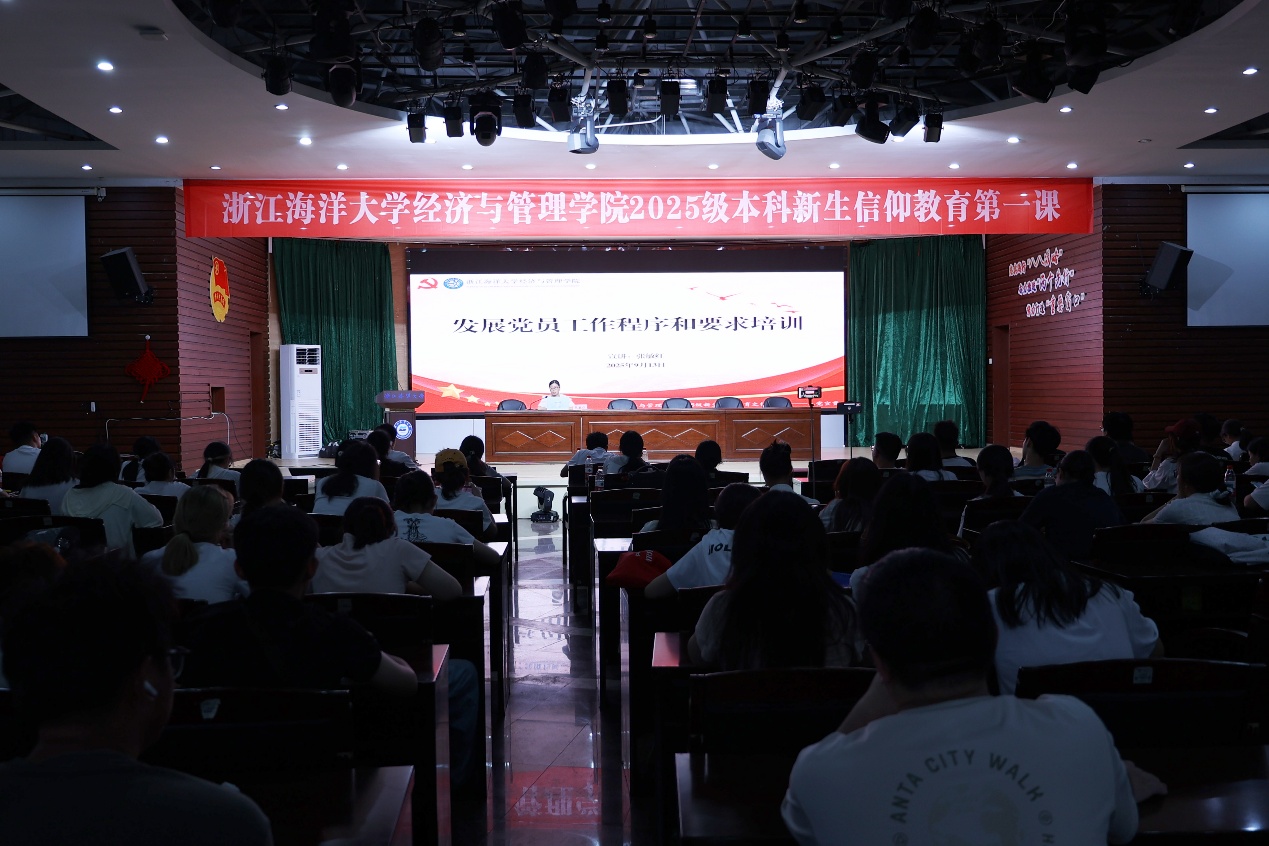 为引导2025级新生树立正确的理想信念,扣好人生“第一粒扣子”,确保学院发展团员、党员工作更加标准化、规范化,2025年9月13日,yl88858永利集团于定海校区活动中心二楼报告厅开展2025级新生始业教育之信仰教育第一课(入团入党宣贯会)。学院全体2025级新生参加会议。会议由学院团委副书记施辰阳、党委组织员张敏红主持。