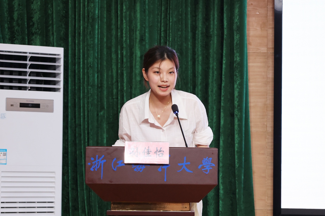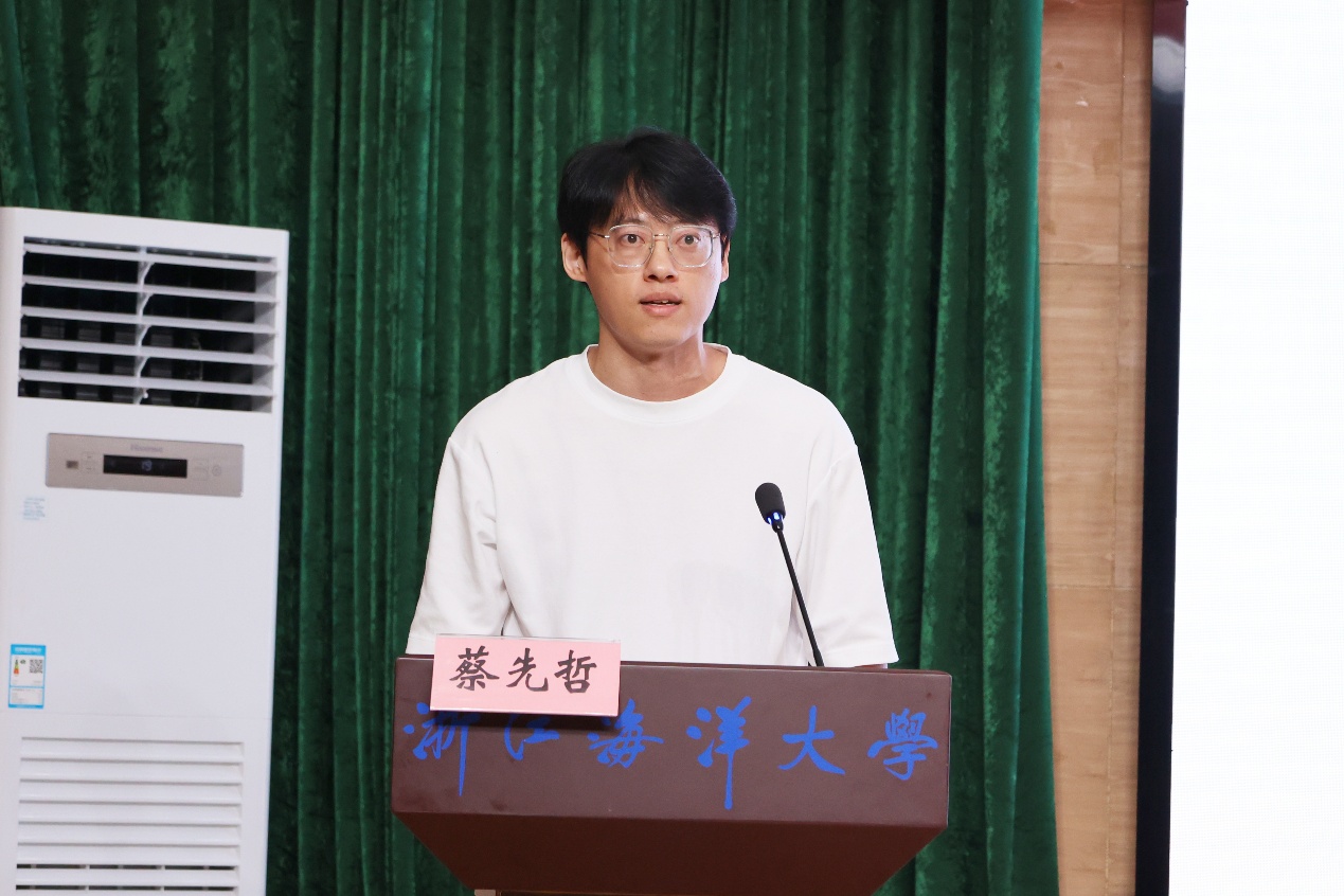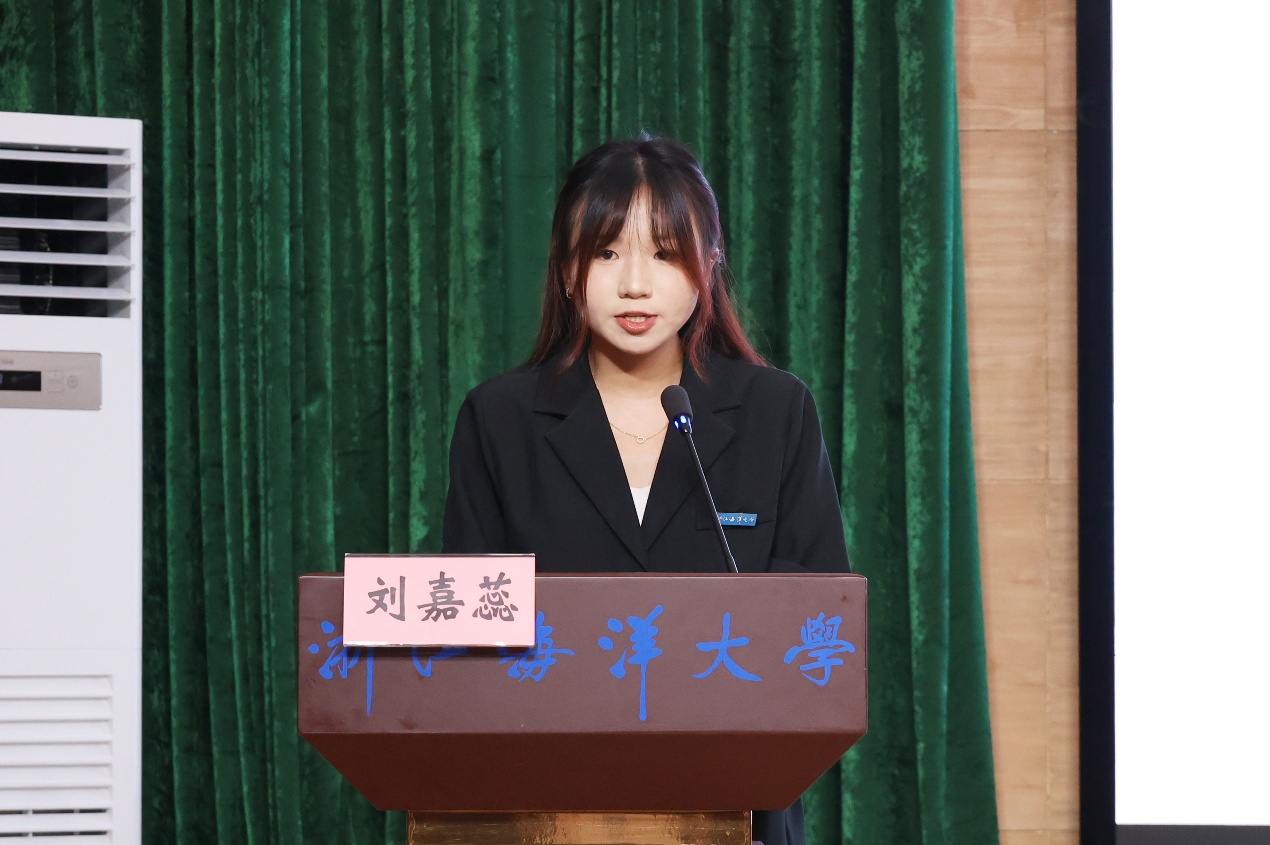 来自A25旅游1的新生代表孙佳怡同学回顾了高中三年的努力与坚持,分享了成长中的困惑与收获,并表达了对父母、老师和学长学姐的感激之情。同时,她呼吁同学们在大学生活中胸怀理想、脚踏实地,勇于探索专业知识与实践能力,把青春书写在全面建设海洋强国的伟大征程中,用奋斗和热情迎接新的挑战。