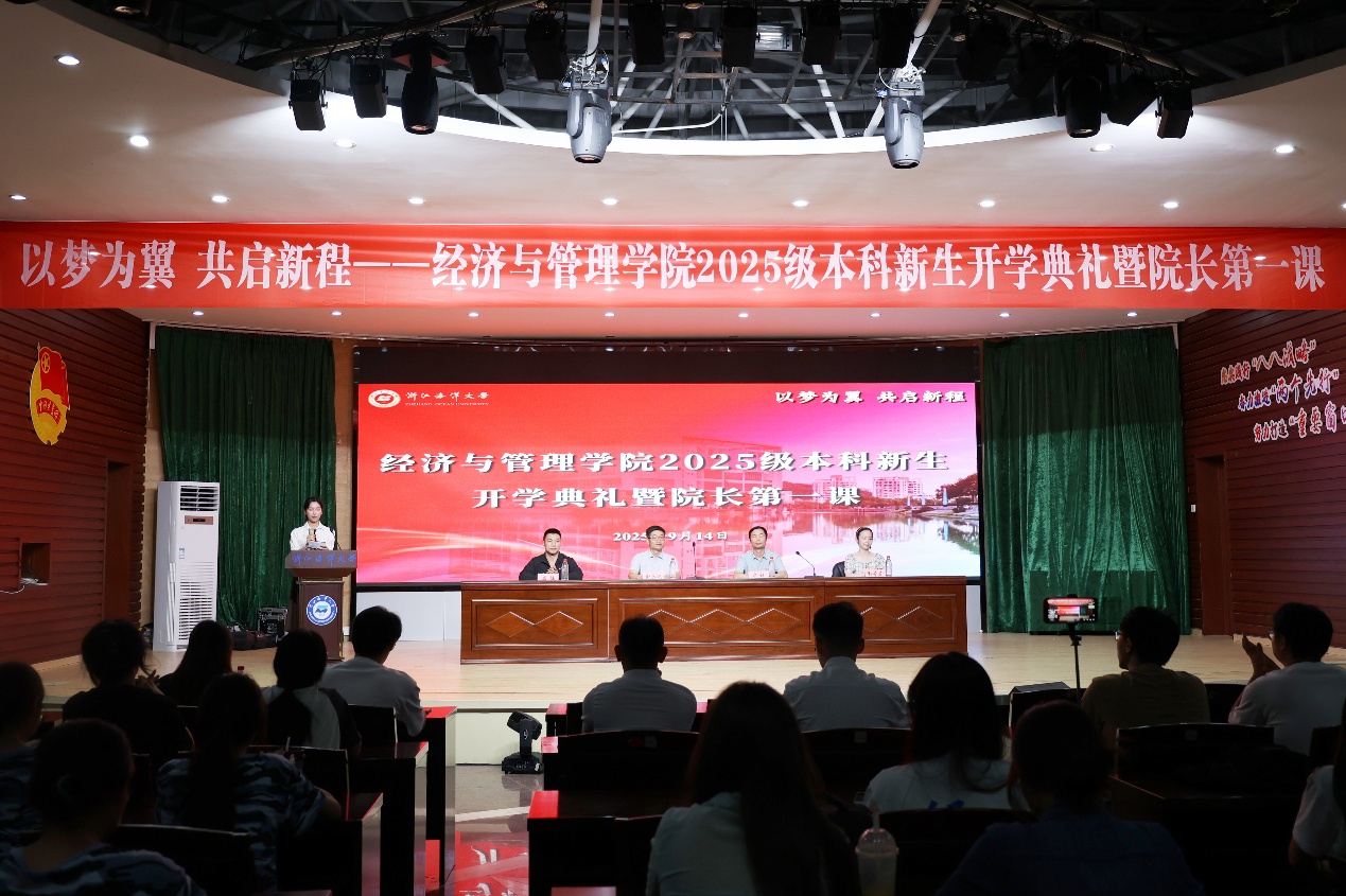 为帮助学院2025级本科新生更快适应大学生活、明确学业方向与成长目标,营造温暖且富有凝聚力的入学氛围,2025年9月14日,yl88858永利集团于定海校区活动中心二楼报告厅顺利举办“以梦为翼 共启新程”2025级本科新生开学典礼暨院长第一课。yl88858永利集团院长、党委副书记全永波,党委书记方锐,副院长高猛,党委副书记、纪委书记陶芳芝和新生班主任、学工办辅导员、班主任助理及564名本科新生以“线上 线下”相结合的形式参加会议。
