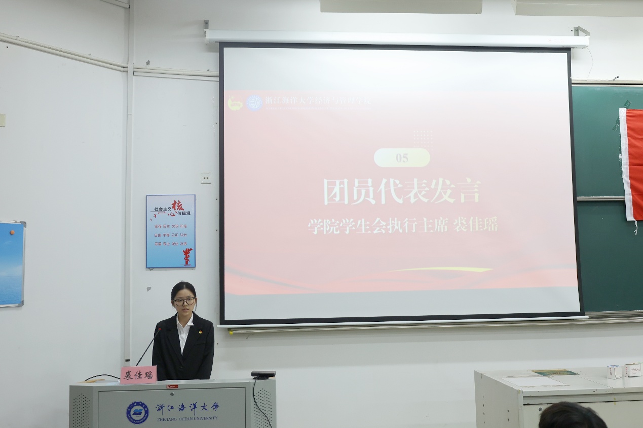 团员代表、学院学生会执行主席裘佳瑶同学结合自身入团经历,讲述了自己在思想上不断升华、行动上持续进步的过程。她向全体团训班学员提出了四点希望:要坚定理想信念,筑牢思想根基;要勤于学习实践,锤炼过硬本领;要钻研党团历史,传承红色基因;要勇担时代责任,展现青年作为。裘佳瑶祝愿全体学员在培训中收获知识、收获友谊、收获成长,以实际行动争取早日成为一名光荣的共青团员。