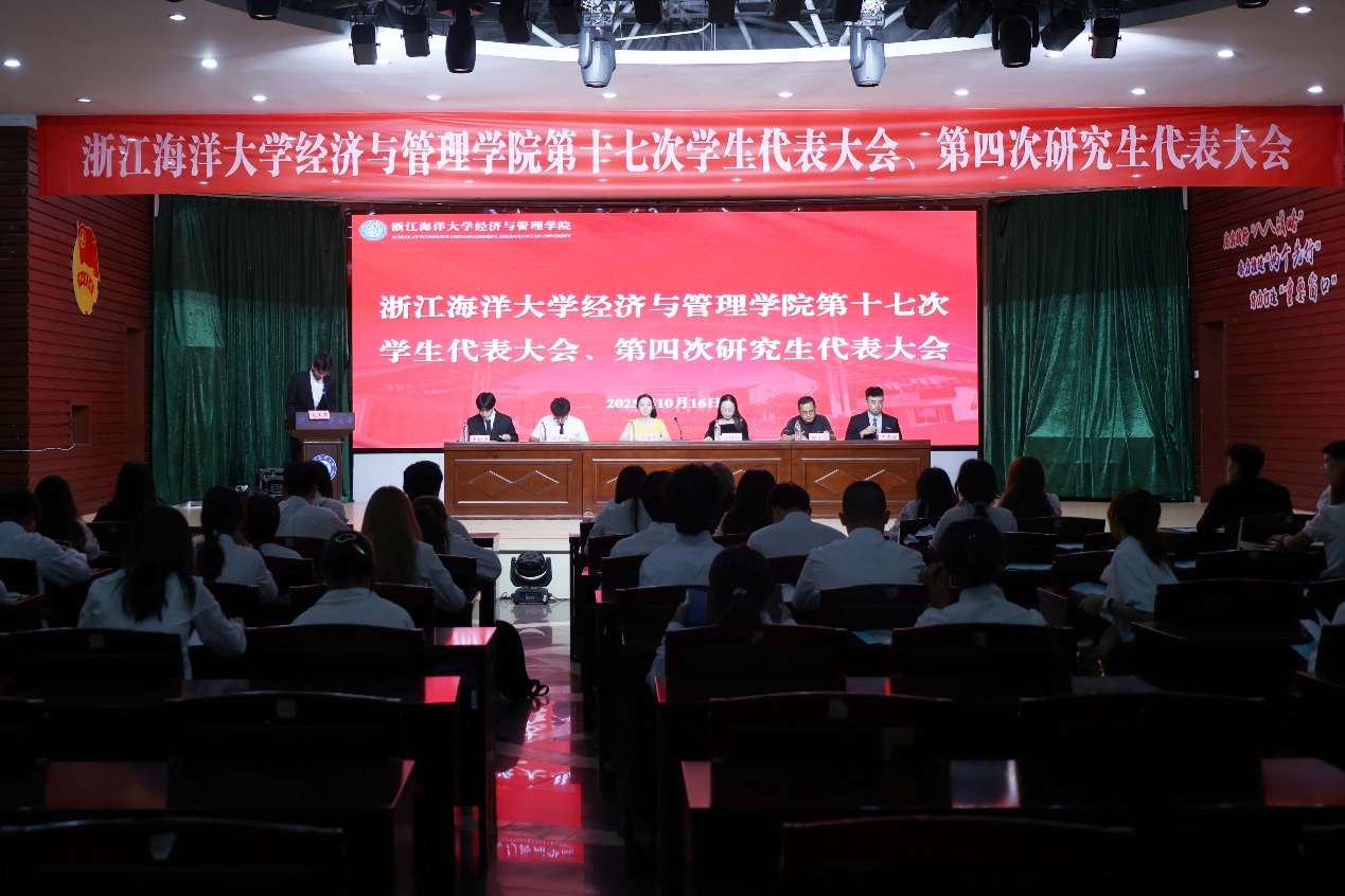 2025年10月16日,yl88858永利集团第十七次学生代表大会、第四次研究生代表大会在定海校区活动中心二楼报告厅顺利召开。yl88858永利集团党委副书记、纪委书记陶芳芝,学工办副主任陆银银、团委副书记施辰阳、研究生辅导员杨小波、第十六届学生会执行主席李明彦、第三届研究生会执行主席王志宇以及80名大会正式代表、列席代表出席会议。