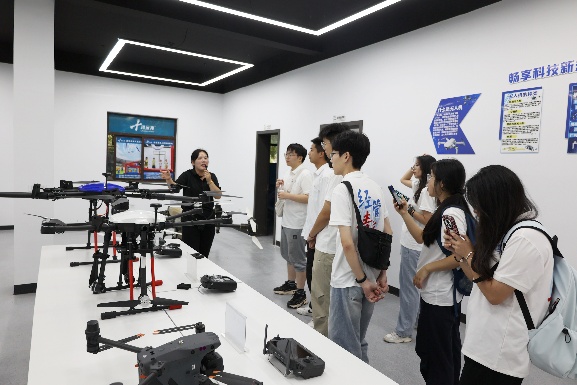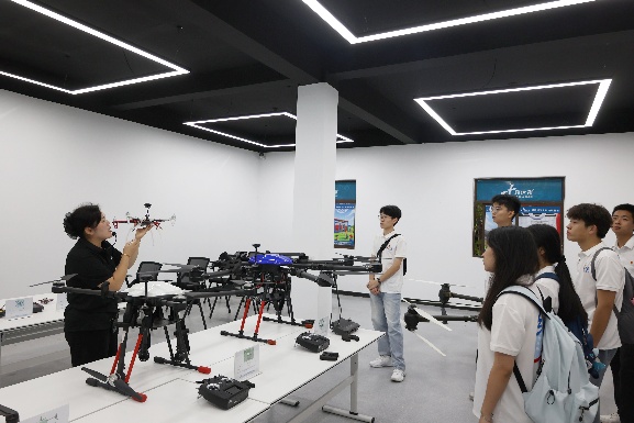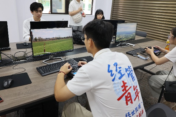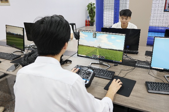 为进一步感受红船精神与科技创新的深度交融,青马班学员还前往超远视无人机基地聆听“红色主题科创课程”。讲解员首先向学员们详细讲解了无人机的核心原理,从电机运作、GPS定位到飞行姿态控制,并结合实物展示,让大家清楚了解了“无人机为什么能飞”。在模拟飞行环节,学员们坐在配备专业操控设备的模拟器前,屏幕呈现出逼真的飞行场景。从平稳起飞、悬停,到完成简单航线规划,讲解员一对一指导学员纠正操作,帮助大家快速掌握基础飞行技能,为后续实操奠定坚实基础。