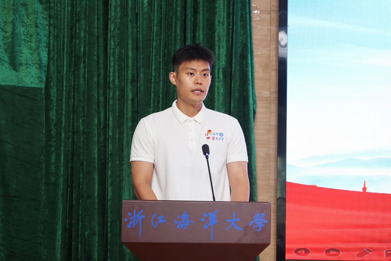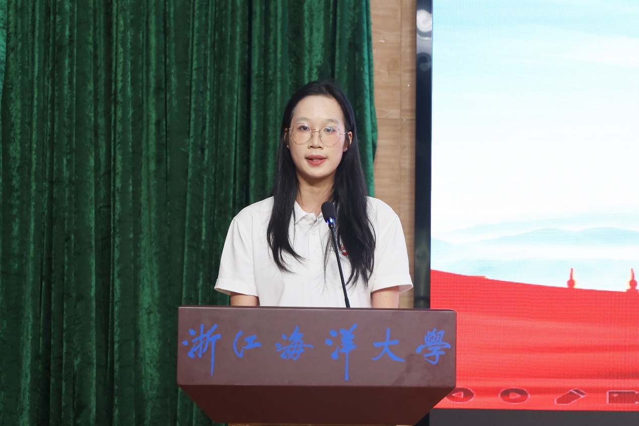 第十六期青马班优秀学员代表、学院团委学生副书记兼学生会执行主席徐慧仪同学代表上一期青马班全体成员向即将接受培训的第十七期学员们表示热烈的祝贺,并结合自身成长经历与青马班培训收获,与全体学员分享了三点心得:一要学理论、守初心,让思想跟党心同频;二要重实践、敢担当,为青春逐梦添力量;三要惜缘分、共成长,以同窗聚力展锋芒。
