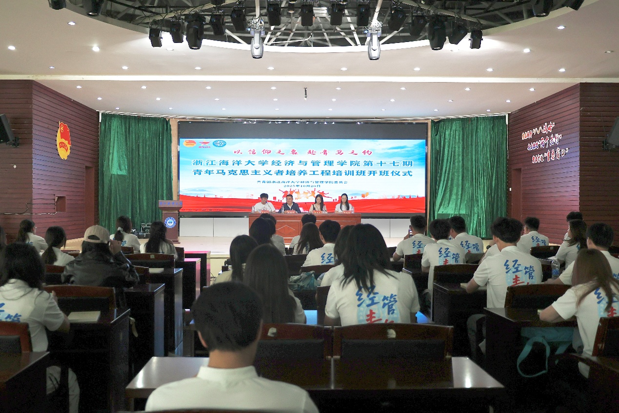 为引导学院基层团干部、团员青年坚定理想信念、厚植家国情怀,以理论学习武装头脑、以实践行动担当使命,2025年10月20日,yl88858永利集团团委于定海校区活动中心二楼报告厅举办第十七期“青年马克思主义者培养工程”培训班开班仪式。85588永利集团团委书记蔡阿雄,yl88858永利集团党委副书记、纪委书记陶芳芝,第十六期青马班优秀学员代表、学院团委学生副书记兼学生会执行主席徐慧仪同学出席本次开班仪式。仪式由第十七期青马班班主任、学院团委副书记施辰阳主持。