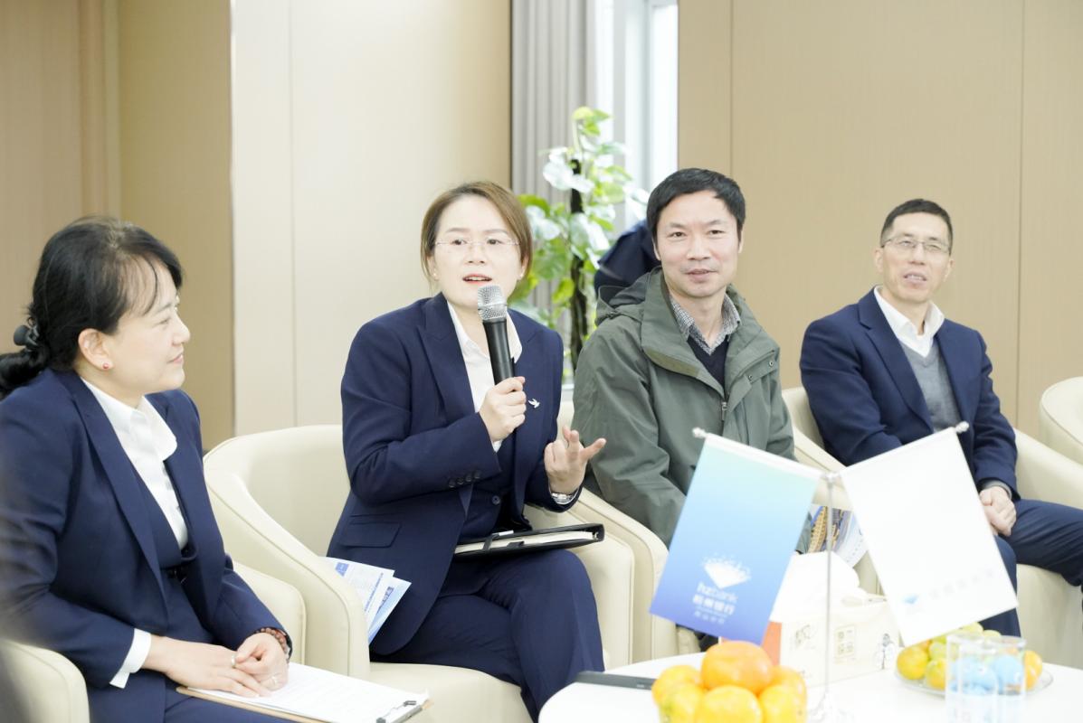 参观结束后,团队成员与银行各部门负责人进行了座谈交流。行长助理陈汇妹,人力资源部副总经理李云玲介绍了企业文化、业务内容,招聘岗位和人才培养机制等内容。