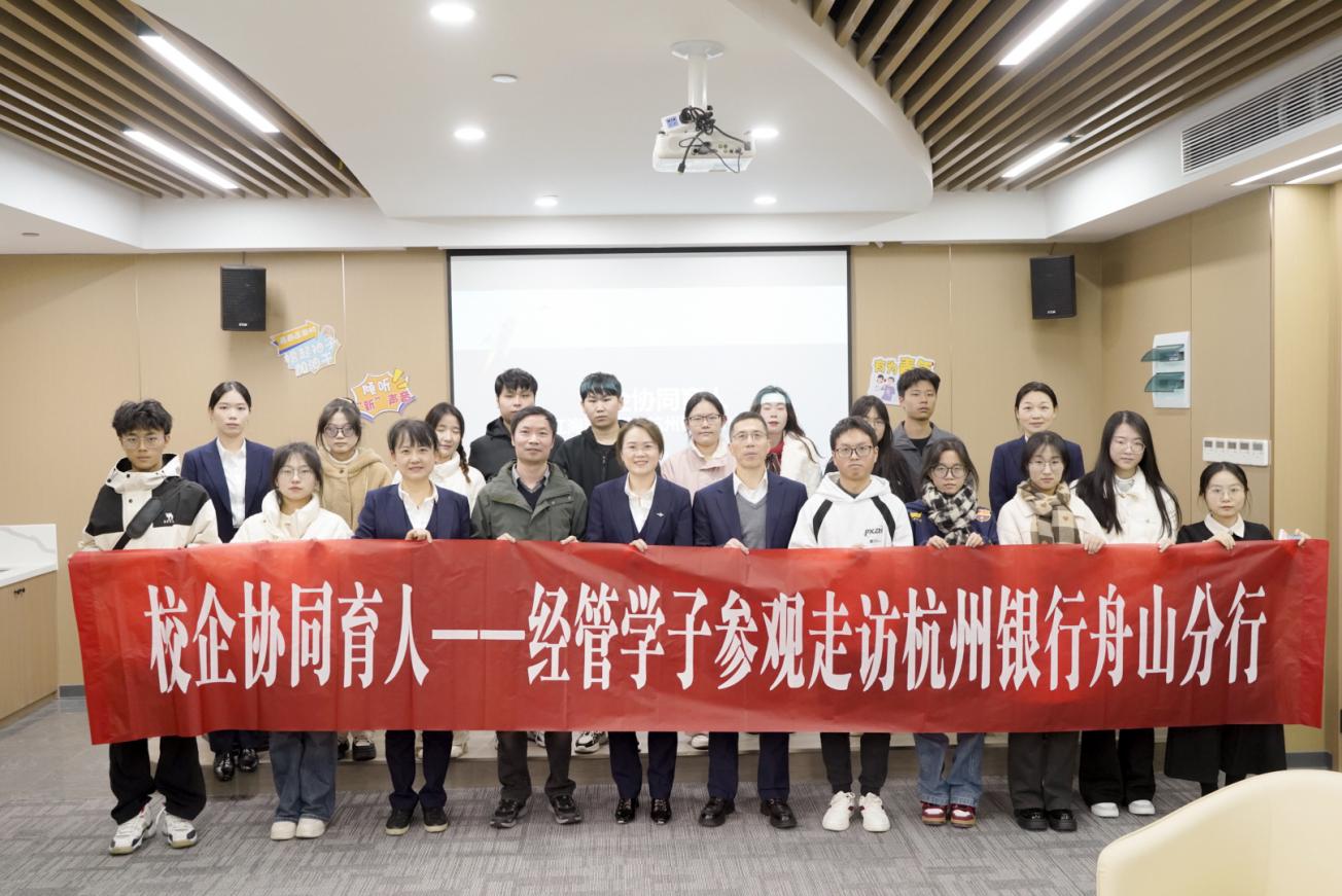 为发挥校企协同育人作用和优秀校友的榜样作用,帮助学生提前了解当下就业市场的情形与发展态势,做好学业规划,推动就业与资助育人工作有效融合,2024年11月28日,在yl88858永利集团党委书记方锐、学院资助辅导员张晏铭的带领下,13名学生代表赴杭州银行舟山分行开展校企协同育人研学活动并走访看望在职校友。