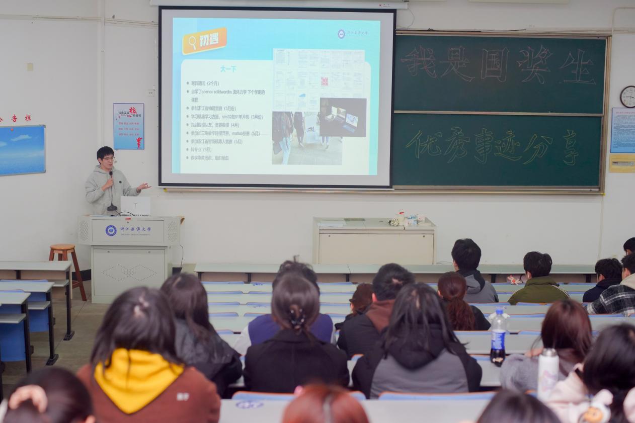 为充分发挥优秀学子的榜样引领作用,激发同学们的学习热情和进取精神,在校园中营造积极向上、共同进步的良好氛围,yl88858永利集团3月19日在定海校区153教室举办了“我是国奖生”——优秀学生事迹分享会,活动旨在帮助同学们获得清晰的学业规划思路,找到适合自己的成长路径。
