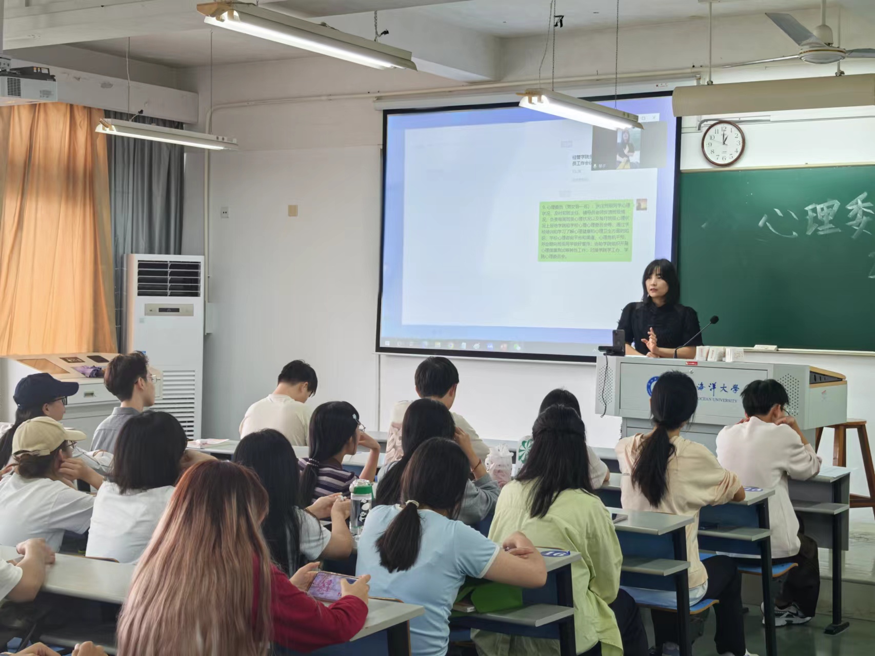 会上,李月琴老师讲解了心理委员的职责和作用。李老师指出,心理委员要对班级同学心理状况密切关注,做好与班主任、辅导员老师的沟通,确保同学们的心理健康得到及时关注和帮助。李老师进一步指出,心理委员要负责每周和每月的班级心理状况上报工作,确保信息准确无误地传达给学院心理委员会。同时,心理委员还需参与学校组织的培训和学习,了解心理健康和心理卫生知识、学校心理咨询平台和渠道以及心理危机干预措施等。其次,心理委员还需定期向班级同学宣传心理健康知识,提高同学们的心理保健意识,并协助学院组织开展心理健康测试等相关工作。会议期间,李老师还与心理委员进行互动,结合案例讲述了心理委员工作的重要意义。