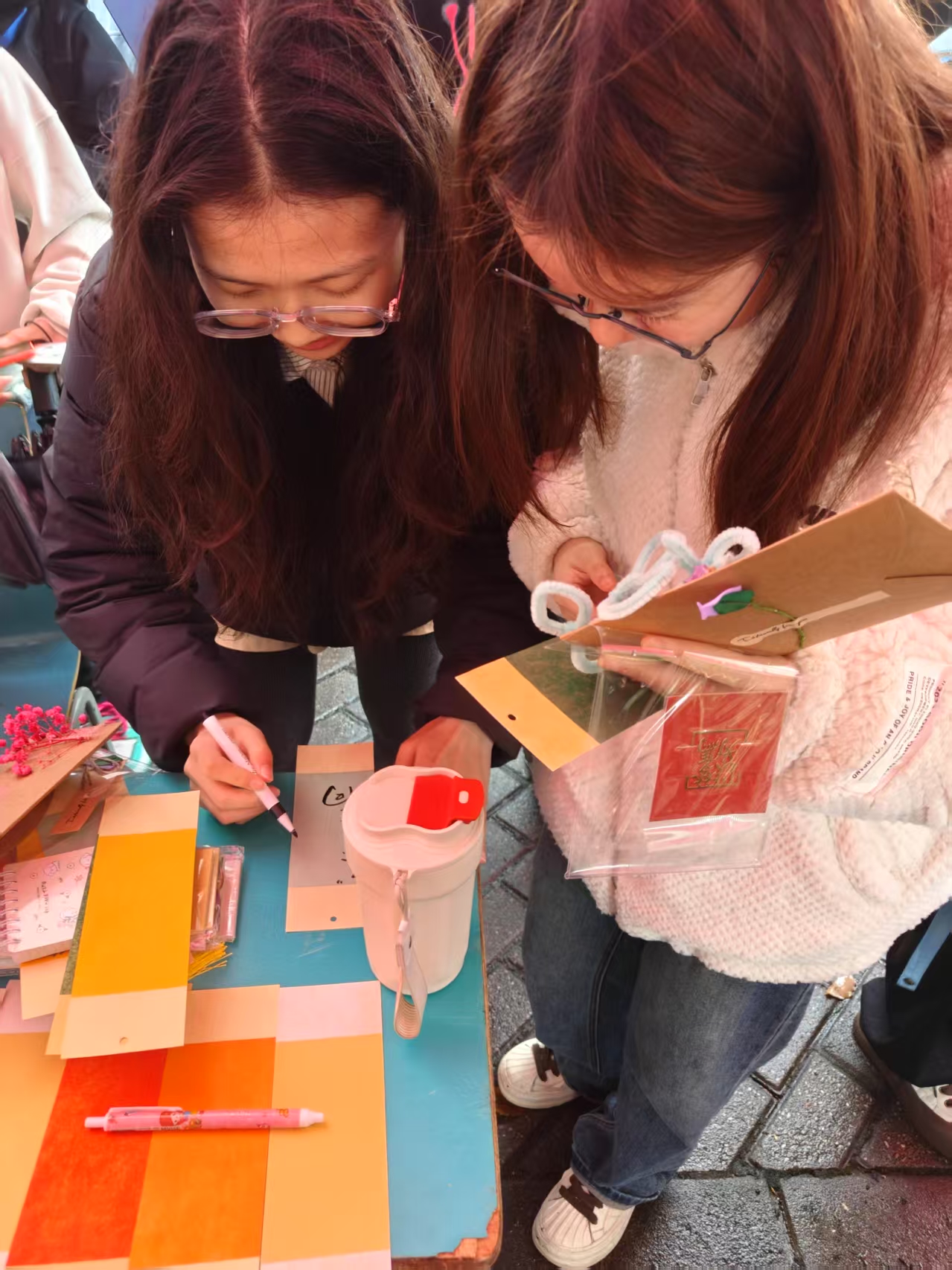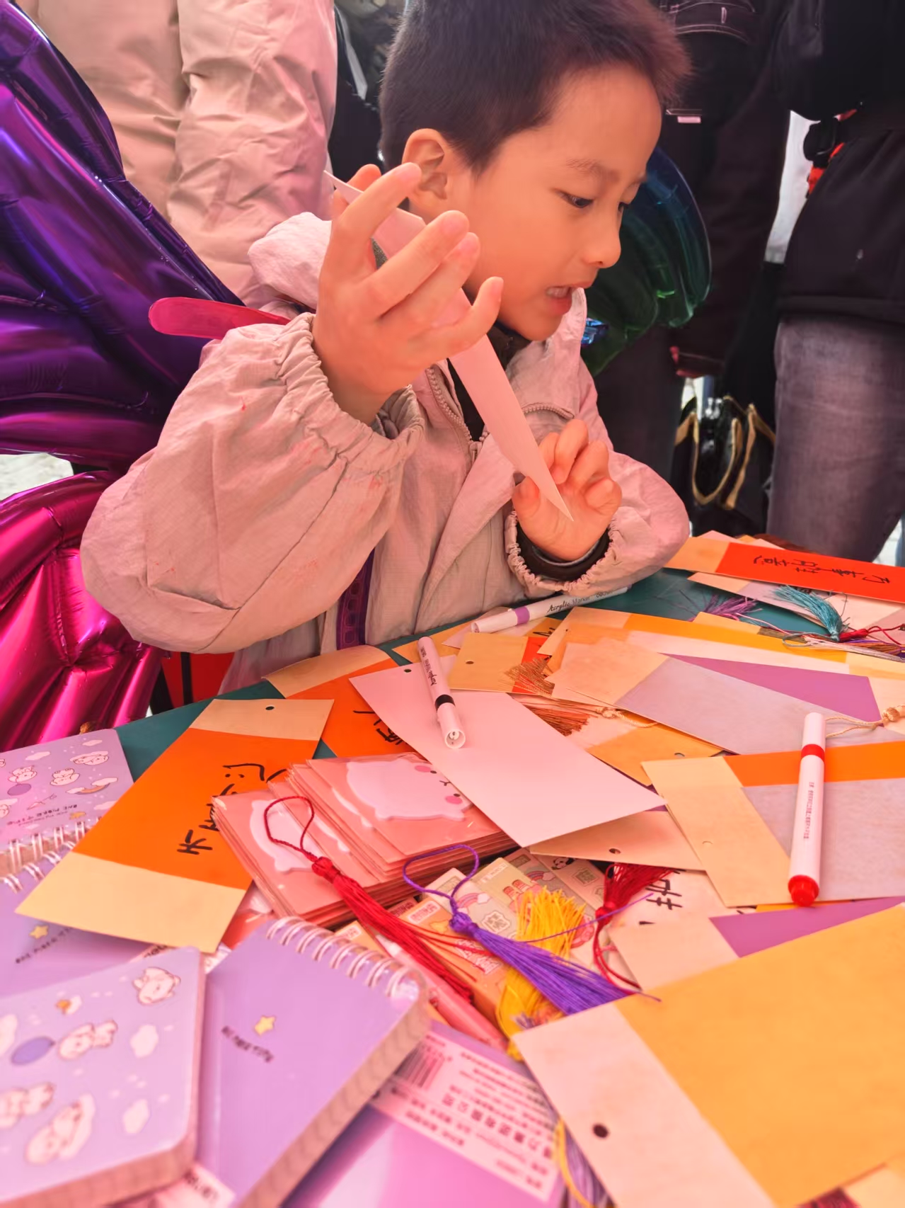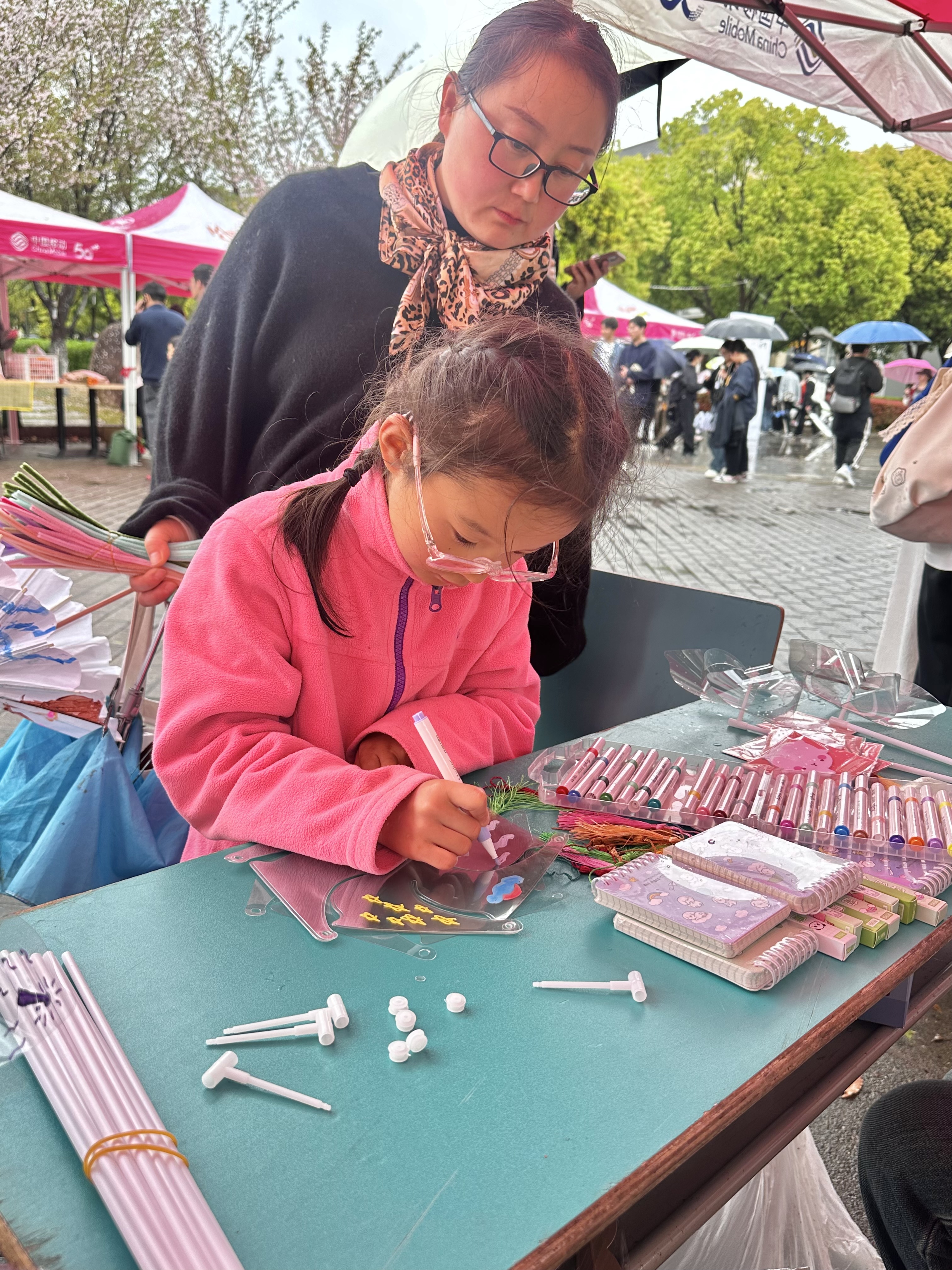 同学们以画笔为媒介,将天边的虹霓、林间的繁花都凝聚于小小的扇叶之上,他们写下的寄语字字句句都饱含憧憬,仿佛是对未来的温柔告白。参与活动的众人将心血倾注于手中的风车,细细“雕琢”,使之成为自己独一无二的艺术品。微风拂过,色彩斑斓的风车随之欢快地旋转,与周围的美景相映成趣,绘就了一幅灵动鲜活的春日图景。
