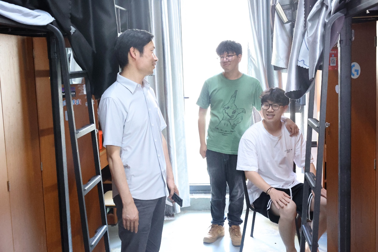 为推进网格化管理和“一站式”学生社区建设,进一步了解学院2025届毕业生的就业现状,2025年6月6日,yl88858永利集团党委书记方锐、团委副书记施辰阳带领学工团队深入2025届毕业生寝室开展走访活动,与本科生和研究生毕业班同学面对面交流。