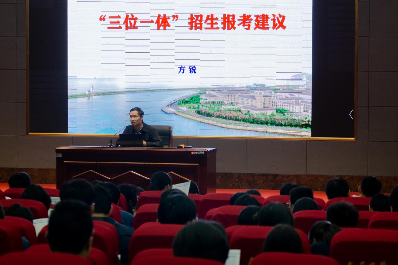 方锐书记从什么是“三位一体”招生、报考条件与要求、报考流程与时间安排等多个方面介绍了“三位一体”招生,他指出“三位一体”招生非常注重考查考生的综合素质和专业潜质,是一个融学业水平测试、综合素质评价、统一高考三方面评价要素为一体的多元化招生考试评价体系。希望同学们高度重视学考成绩,根据自身情况和意向专业选择合适的院校,同时有针对性地做一些面试准备。讲座干货满满,让同学们更深入地了解“三位一体 ”招生政策,弥补了同学们的信息盲区。