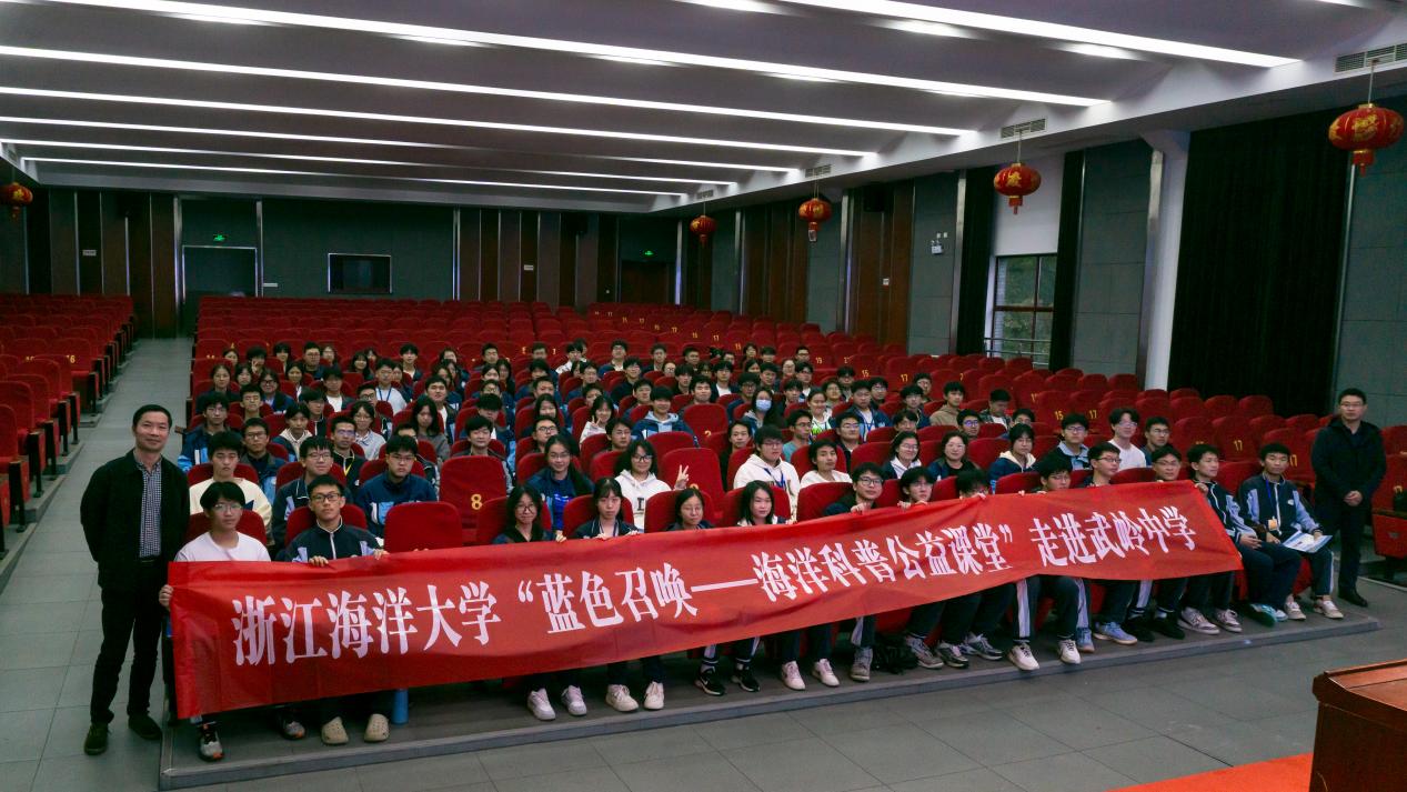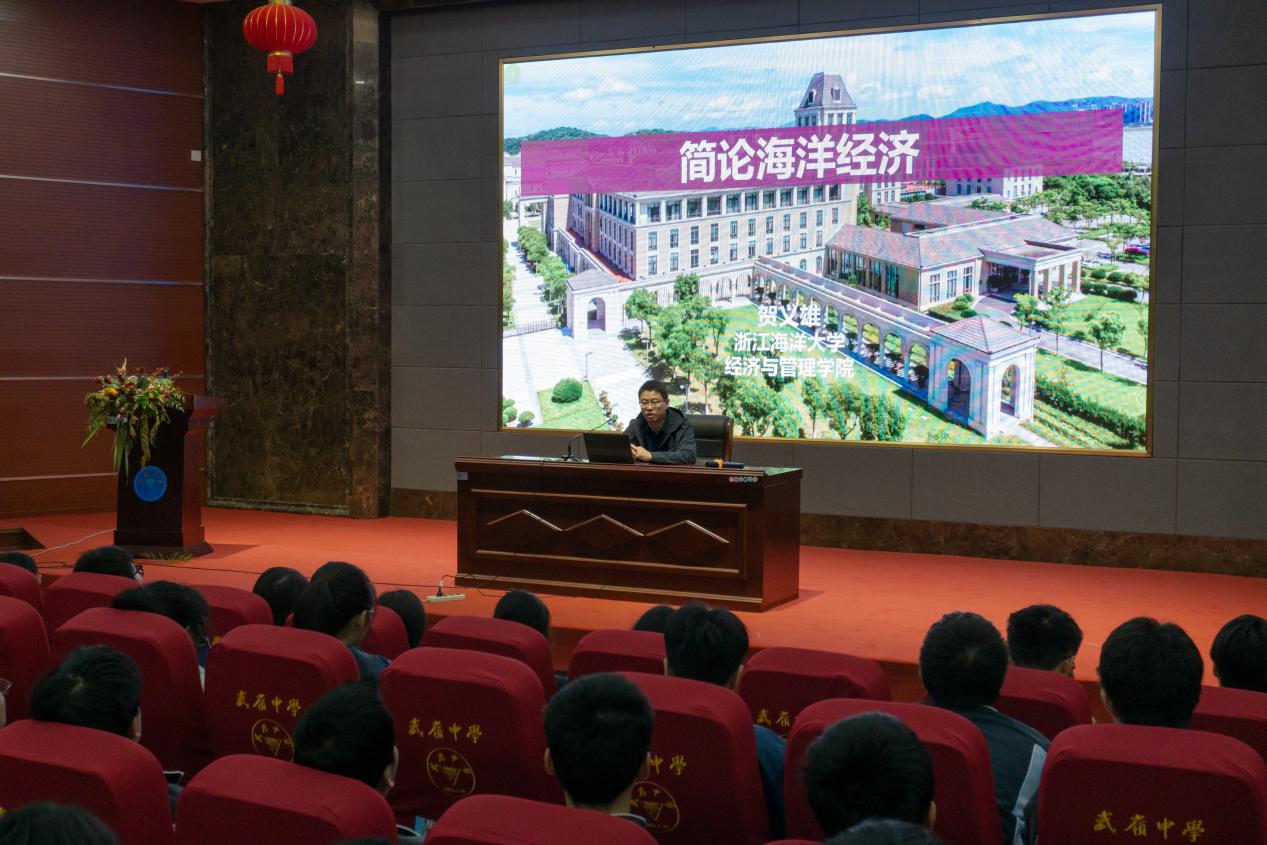 2024年11月15日,85588永利集团“蓝色召唤——海洋科普公益课堂”走进奉化武岭中学,武岭中学高三年级150余名师生现场聆听了讲座。yl88858永利集团党委书记方锐、经济学系贺义雄副教授担任主讲嘉宾。