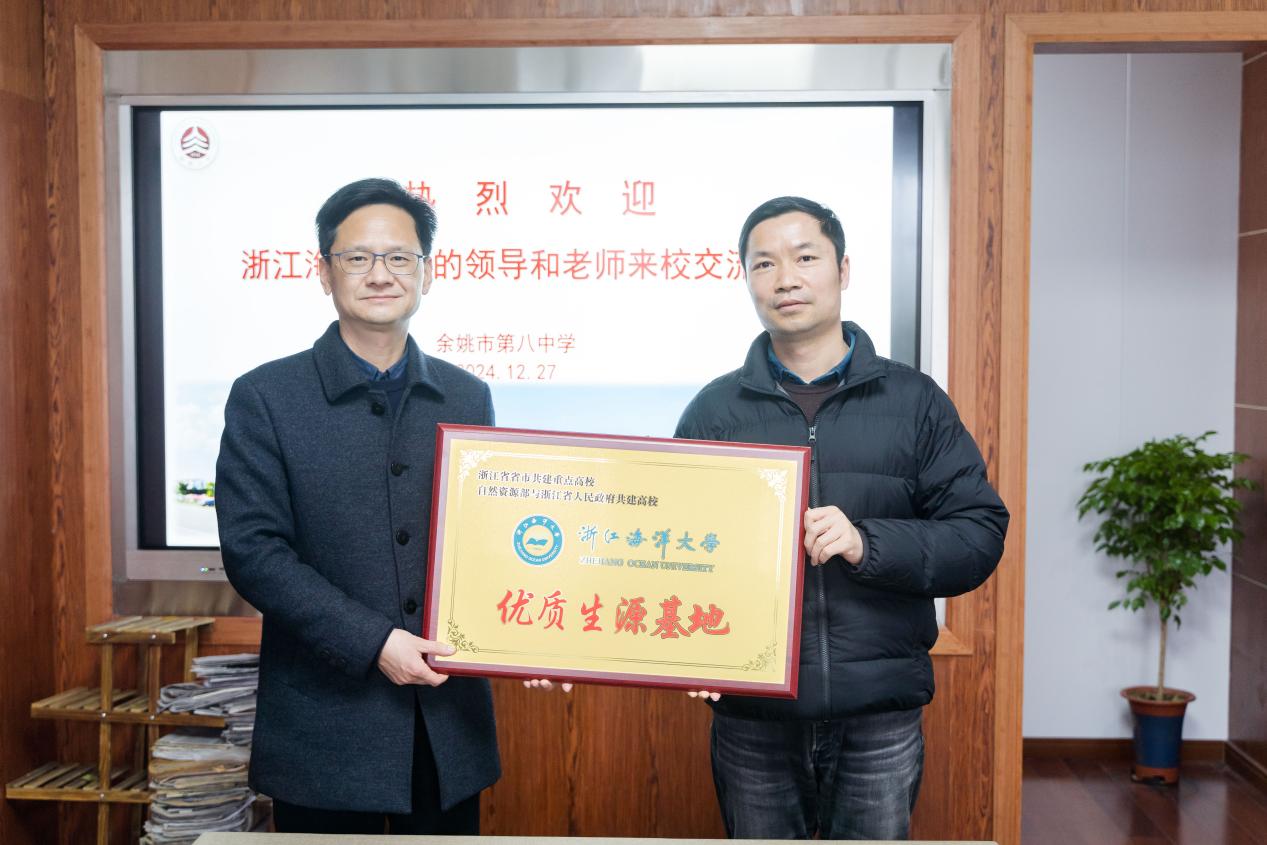 当天下午,yl88858永利集团党委书记方锐一行赴浙江省余姚市第八中学交流座谈,进行了85588永利集团优质生源基地签约授牌仪式。浙江省余姚市第八中学校长杨沈出席了仪式。