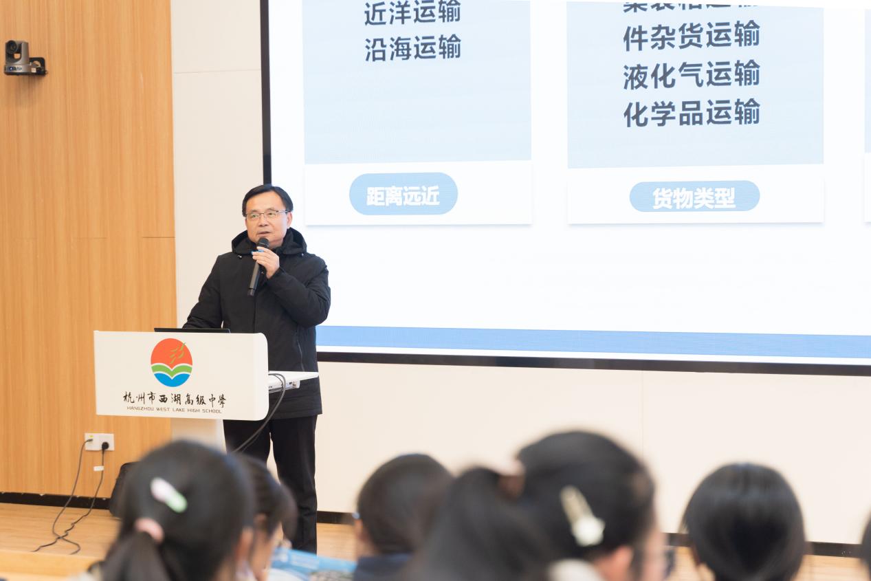 彭勃教授语言幽默风趣,他将物流管理和海运业相关专业知识融汇穿插在整场讲座之中,又结合了身边生动案例进行讲授,讲座深深吸引了在场一百多名师生,获得了阵阵掌声。本次讲座使得杭州市西湖高级中学学子增强了对海洋运输物流业的认识,拓展了同学们的视野,同时也使同学们更全面的了解了我校的基本情况。