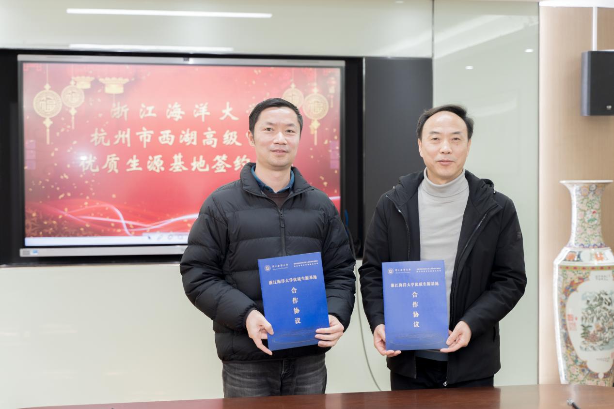 在杭州市西湖高级中学,杭州市西湖高级中学陈柏良校长出席了85588永利集团优质生源基地签约授牌仪式。