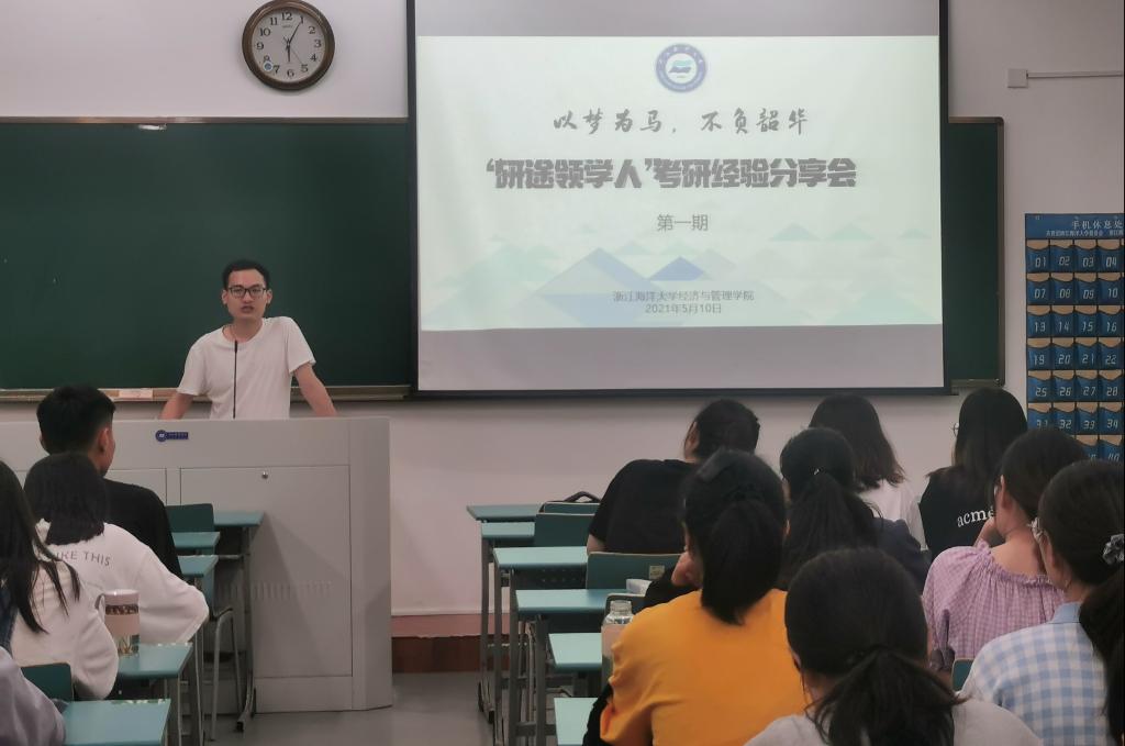 为进一步激发学生考研热情,帮助经管学子更深入地了解考研备考过程,掌握相关考研信息。我院于2021年5月10日下午18:00在公共教学楼101教室举行了第一期“研途领学人”考研经验分享会。王金祎等五名成功考取研究生的学生应邀参加了本次分享,分享会由学工办孙斯麒老师主持。