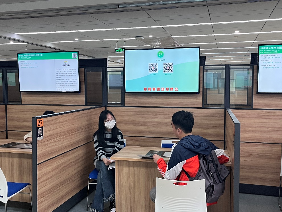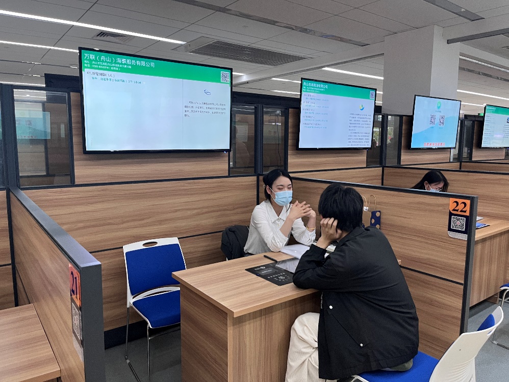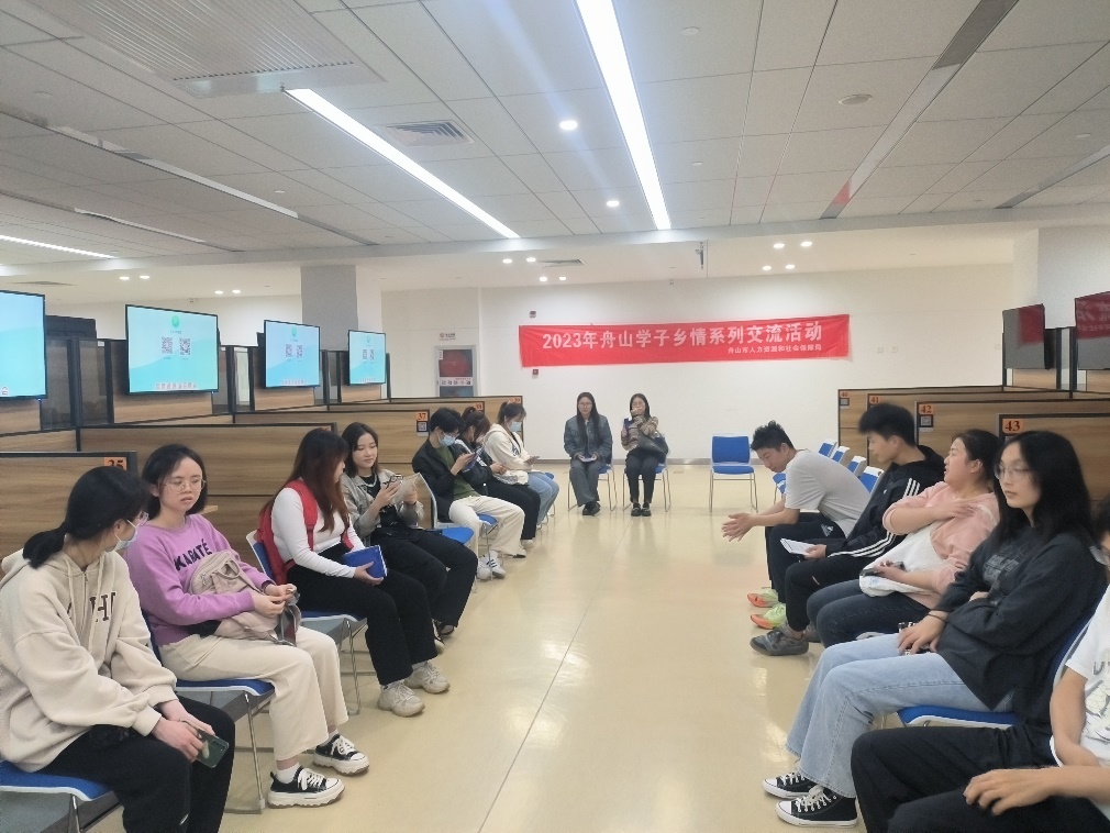 在企业实地参访之后,海大学子们来到舟山市人力资源公共服务中心,参加舟山学子乡情系列招聘会,并开展就业指导交流活动。