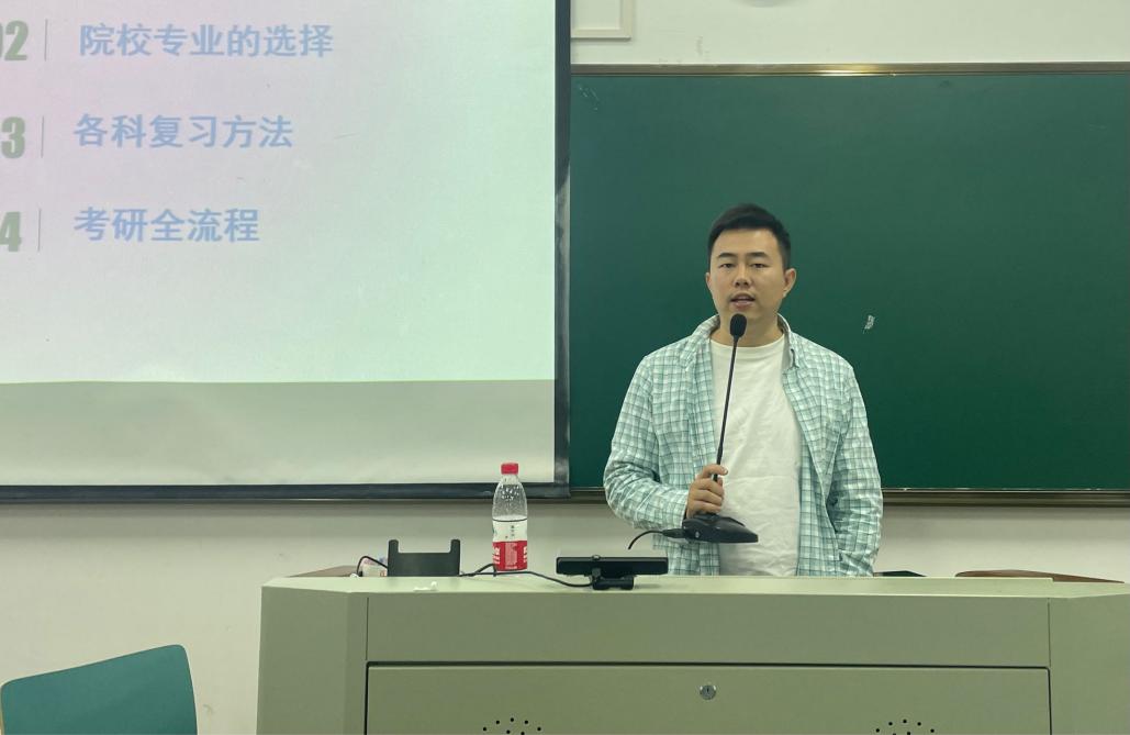 陈老师主要就考研的宏观形势、院校专业的选择、各科复习方法和考研全流程四个板块进行讲解。陈老师指出,截止2022年,考研人数连续七年增长,竞争仍然十分激烈。面对日益严峻的考研形势,他呼吁同学们尽早做好规划,科学备考,筑牢上岸的基石。在向同学们讲述了专硕和学硕的区别后,他针对一些同学的困惑,为同学们进行了排忧解难。
