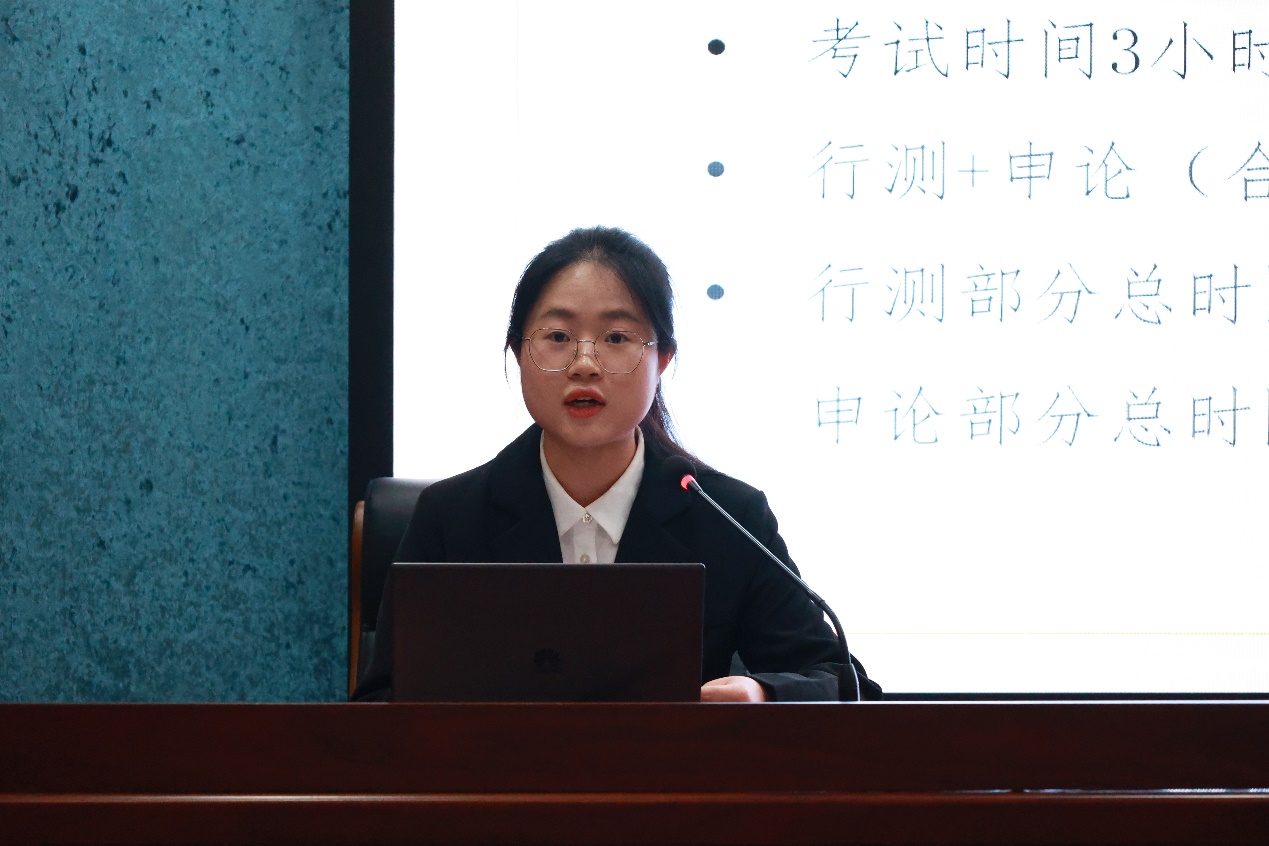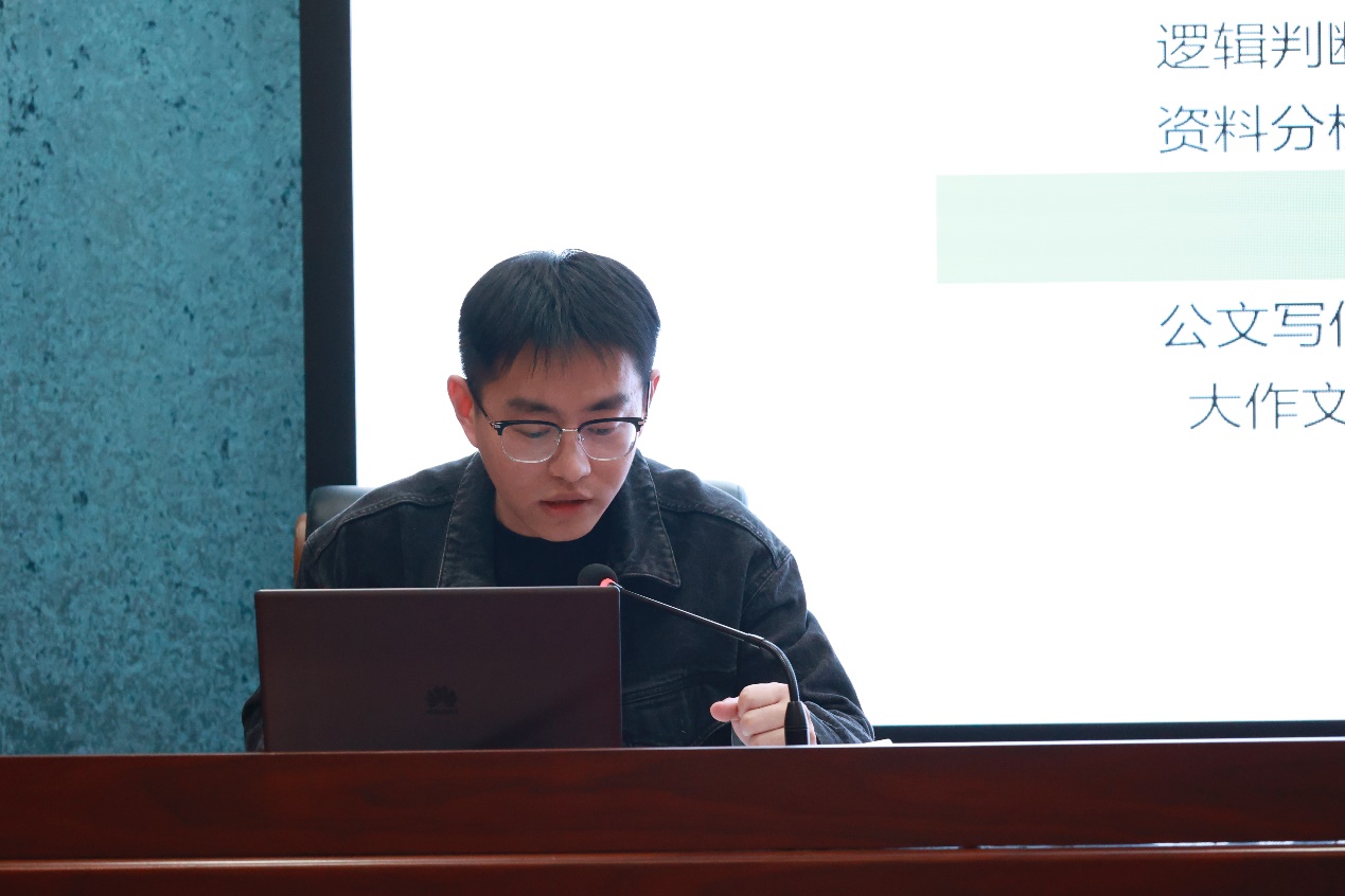 杨择昀从公告解读、时间节点、初试心得、面试心得、真题资料和命题特征这五个部分深入介绍了选调生考试的相关情况。他还仔细地向大家分享了他备考的复习时间轴,从课程自学到真题练习再到国考、省考和选调的公告时间线,和现场同学分享了他在做题时的小技巧。对于面试环节,杨择昀给出了他独特的见解:面试需要长期的积累,积累省情,融入内容,充实内容。选择的题材要融入自己的思考,尽量避免热点事件与他人重复,避免监考官的听觉疲倦。