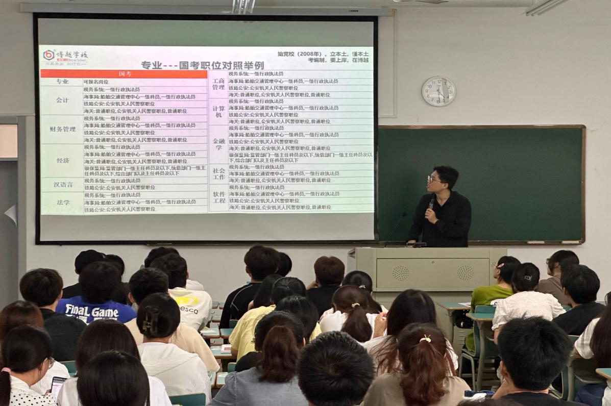 通过本次讲座,同学们更加清楚地了解了公务员考试的基本情况和考情变化,有助于同学们进一步转变就业观念、积极规划未来就业方向。学院将坚持高质量做好学生就业服务工作,围绕分层分类理念,聚焦学生发展需求展开工作,院团委就业服务部也将陆续邀请各行业专家、公考指导老师为同学们排忧解惑,增强同学们考公考编信心,为学生成长成才保驾护航。